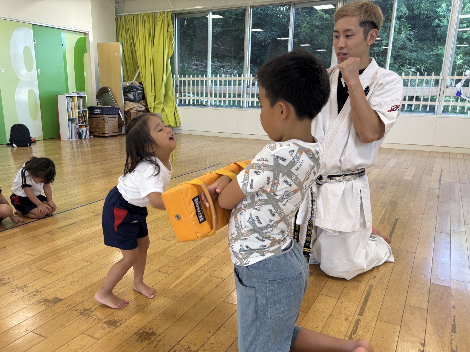 ミットを持ってもらってキックとパンチの練習を行いました。