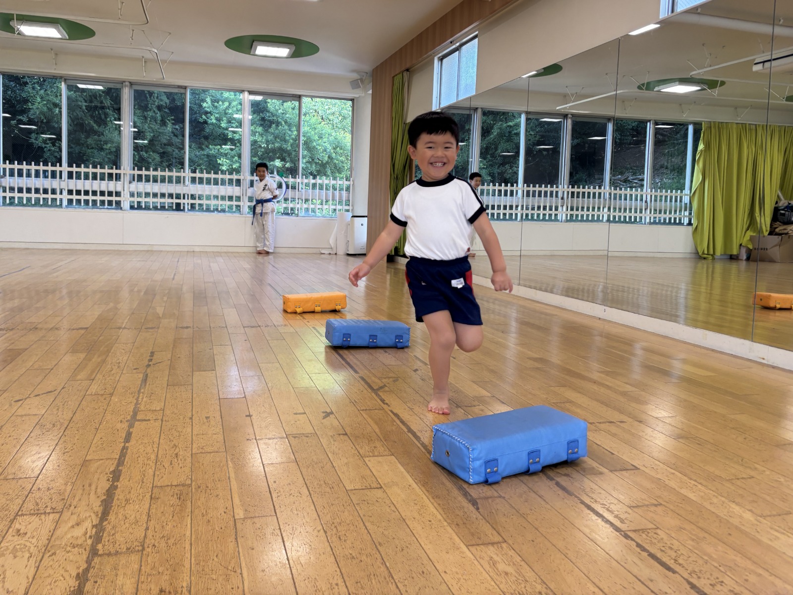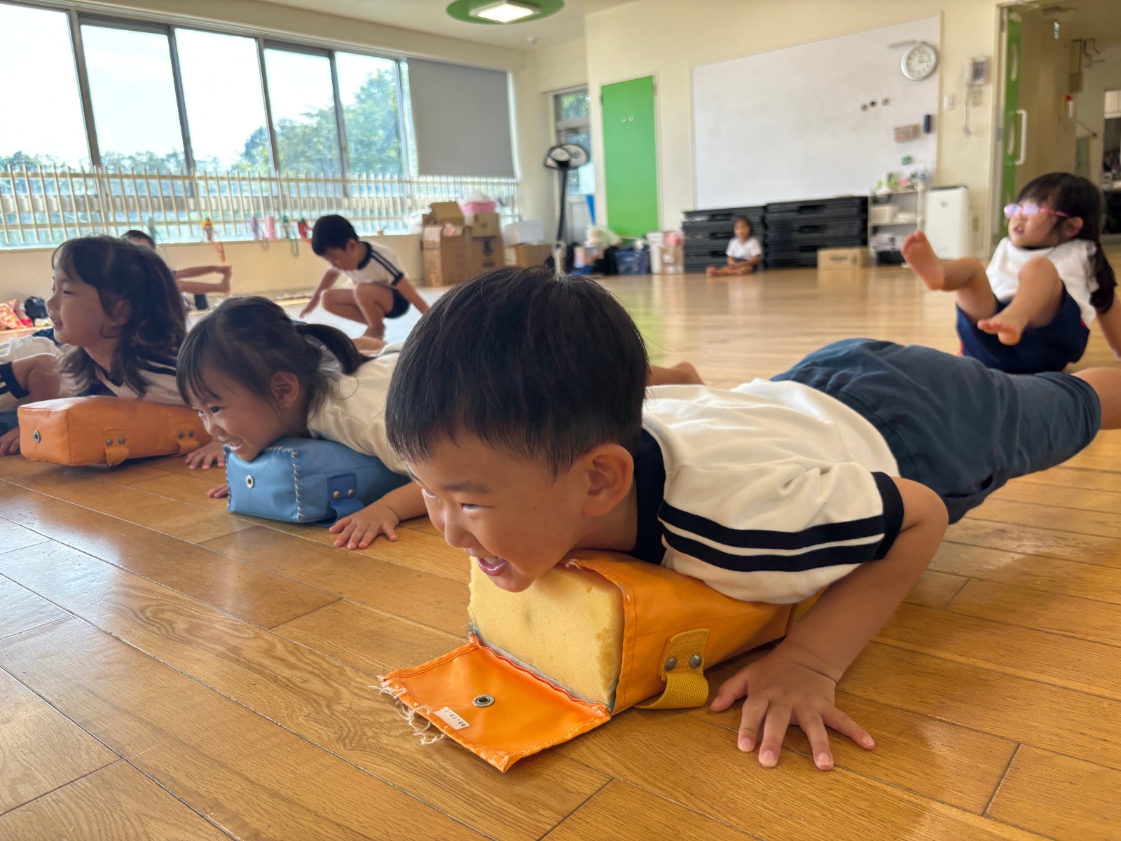 ミットをたくさん置いて飛んだり、ミットに胸につけて腕立て伏せをしたりしました。