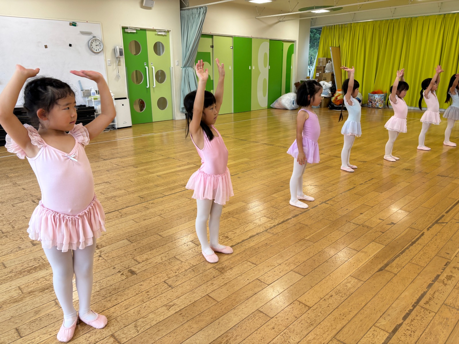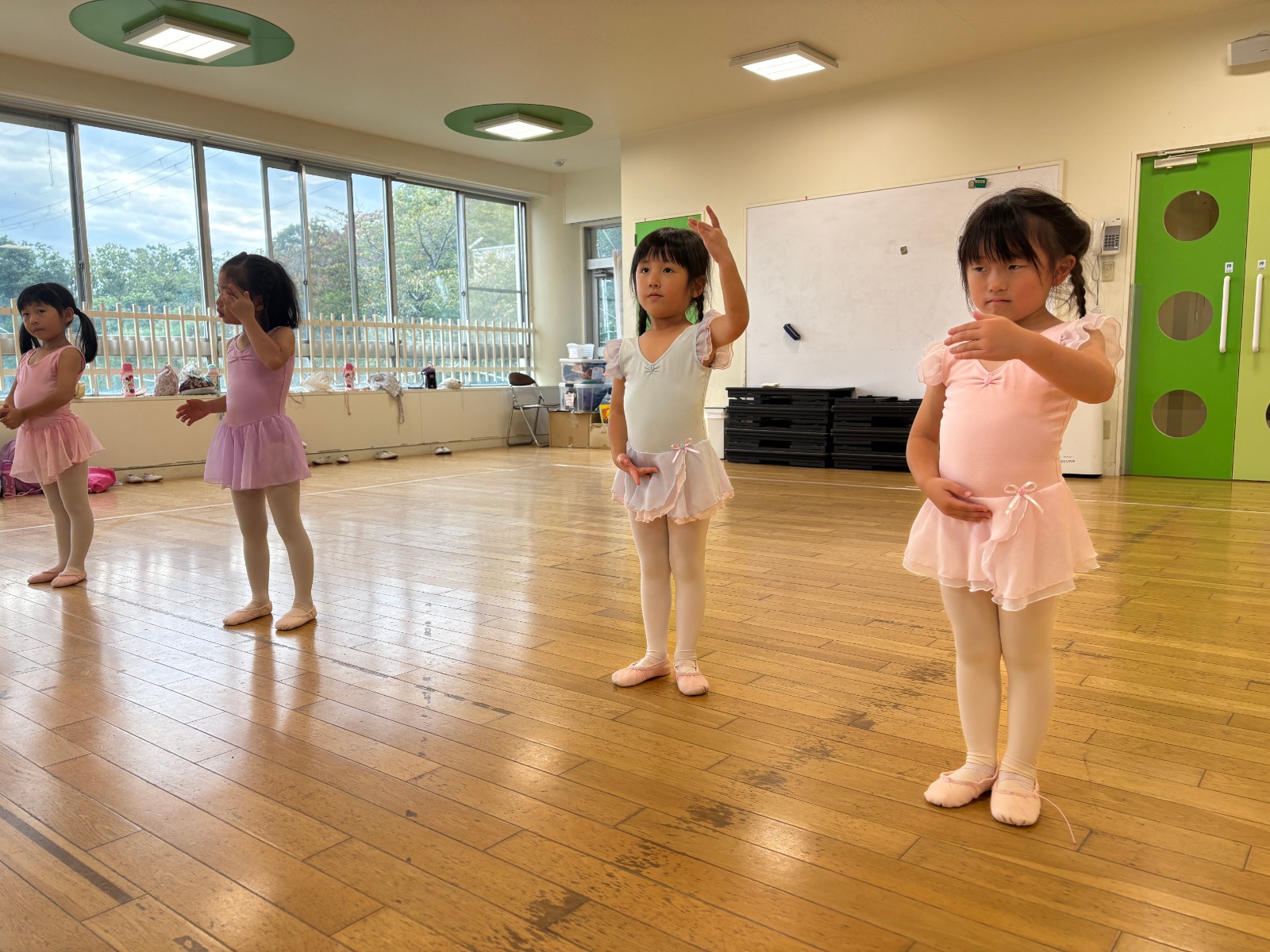 ビーンズ祭に向けての練習を頑張っています。 かわいい動物の振り付けを練習しており、子どもたちも楽しく演じながら笑顔で出来るようになってきています。それぞれの動物によって振り付けが違うため、自分たちの動く場面を演技するために他のお友だちの様子も見ながら 指先や足先などの細かいところを意識するなども意識して頑張ります。