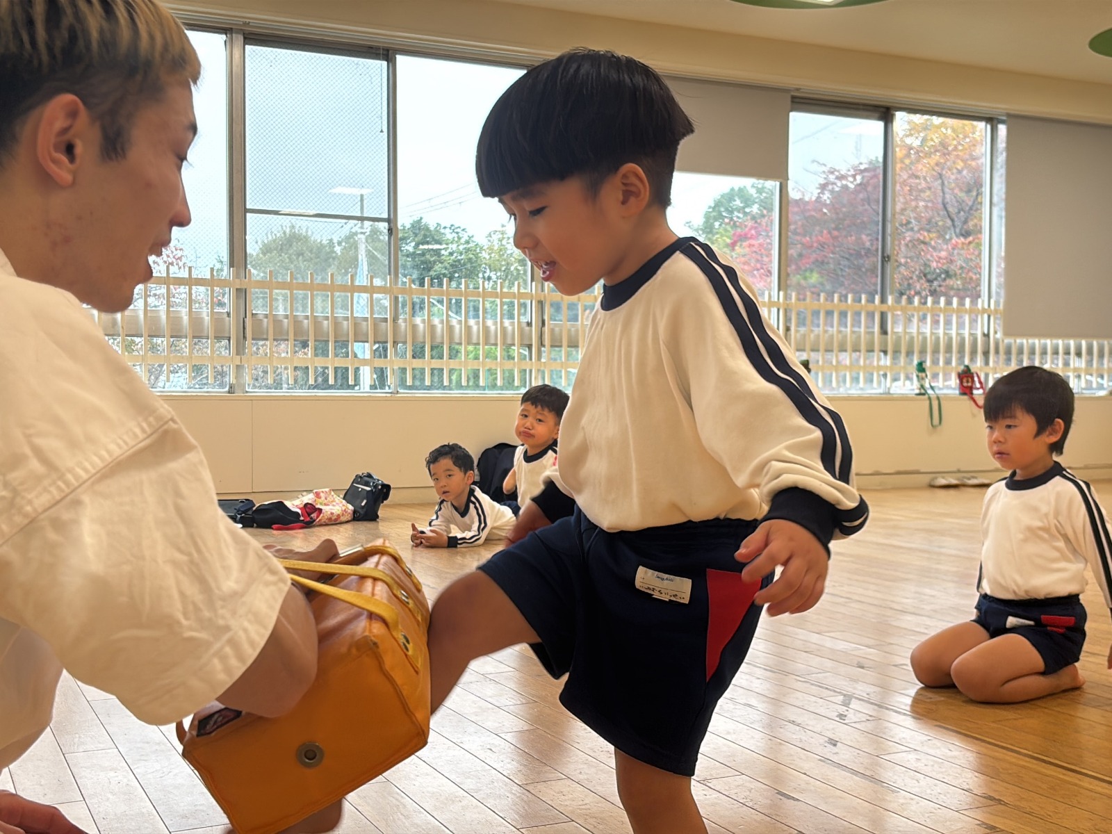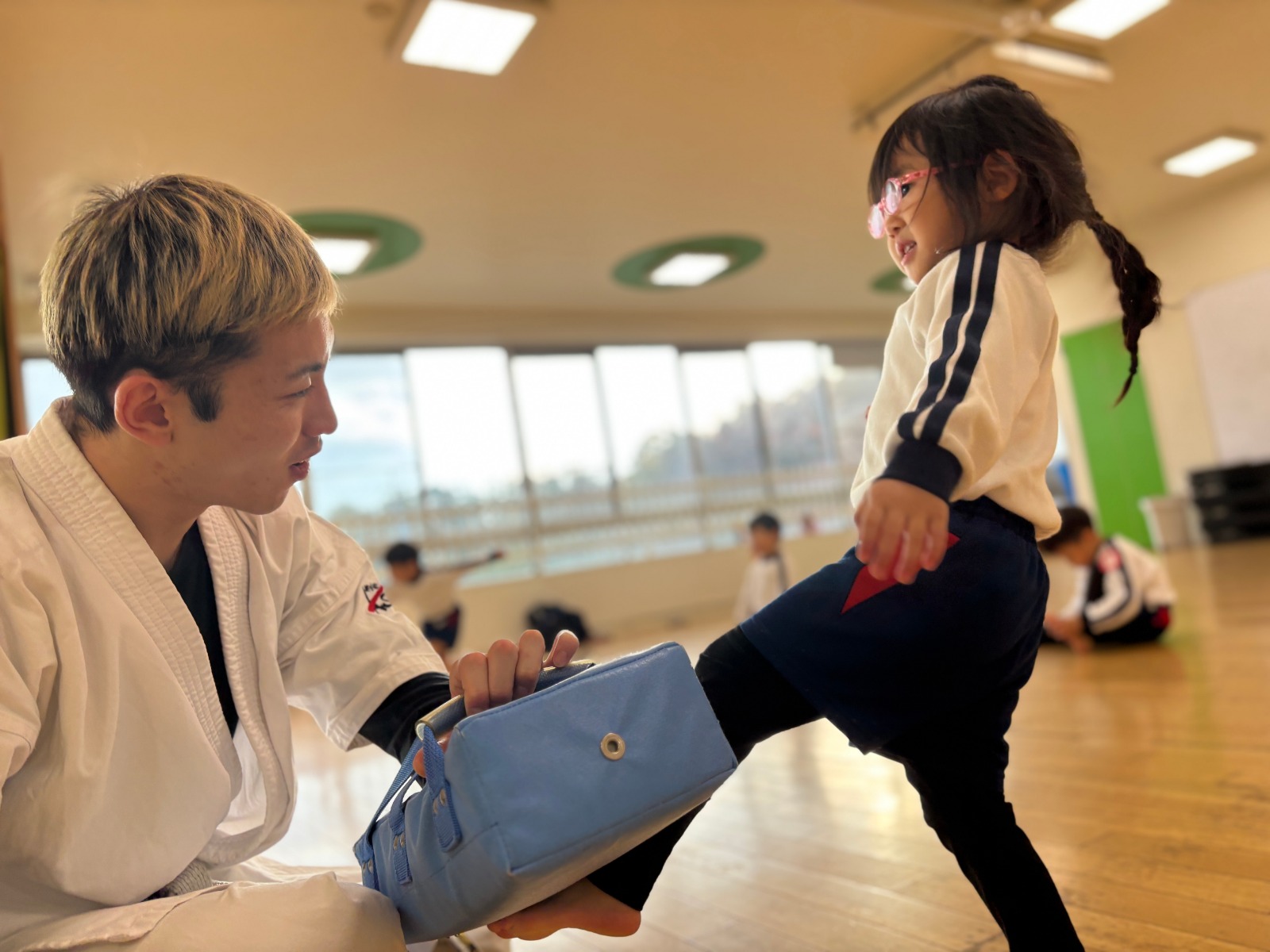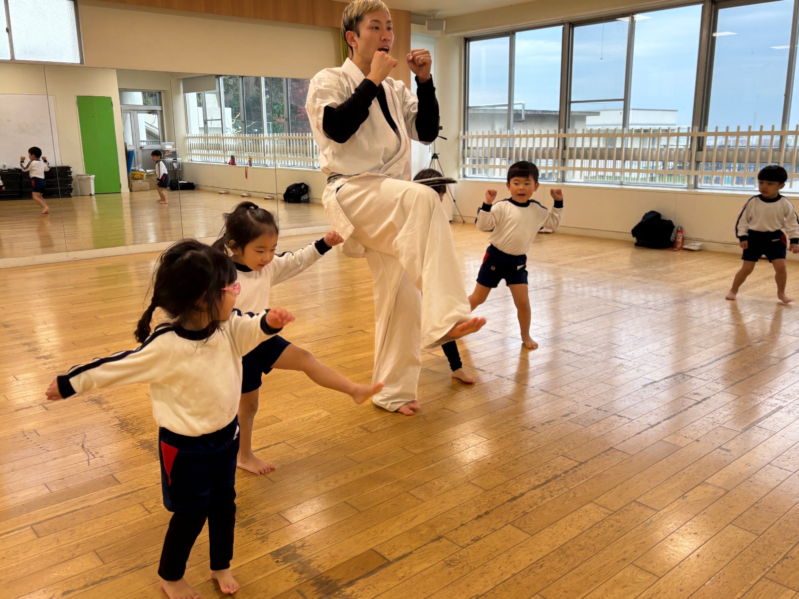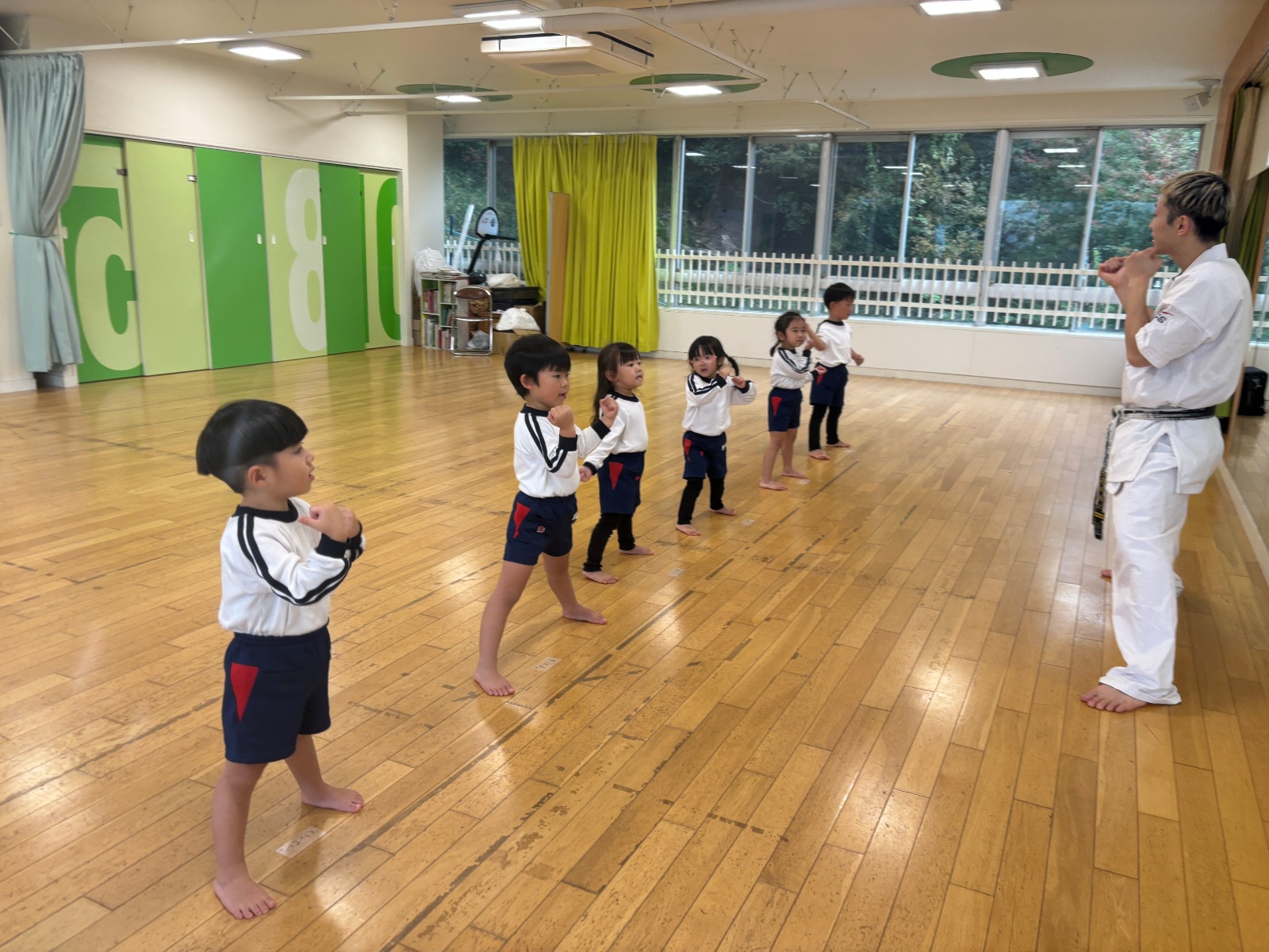 以前よりもとてもきれいに並んで練習をしたり、正座をして待ったりすることが出来るようになりました。 ミット練習では、1つずつ丁寧に思いっきりキックやパンチをする姿が見られます。 終わった後には「押忍!」と元気よく挨拶。とても大きな声が部屋に響いておりました。 また、移動稽古も始まりました。 立つ向きや移動の仕方を講師と一緒に1つずつ確認。 難しいけれど、一生懸命頑張っている姿はとてもかっこよかったです。