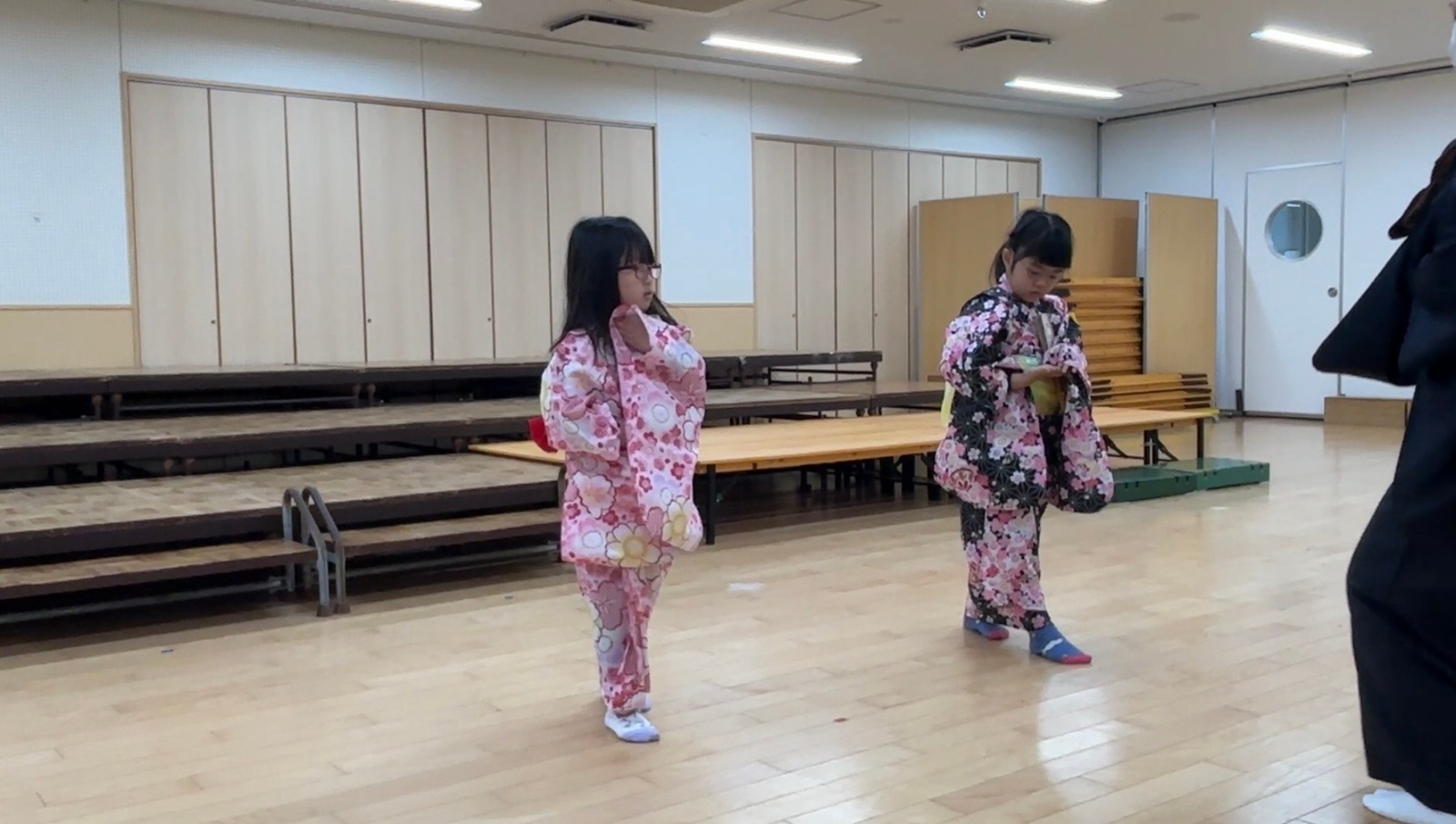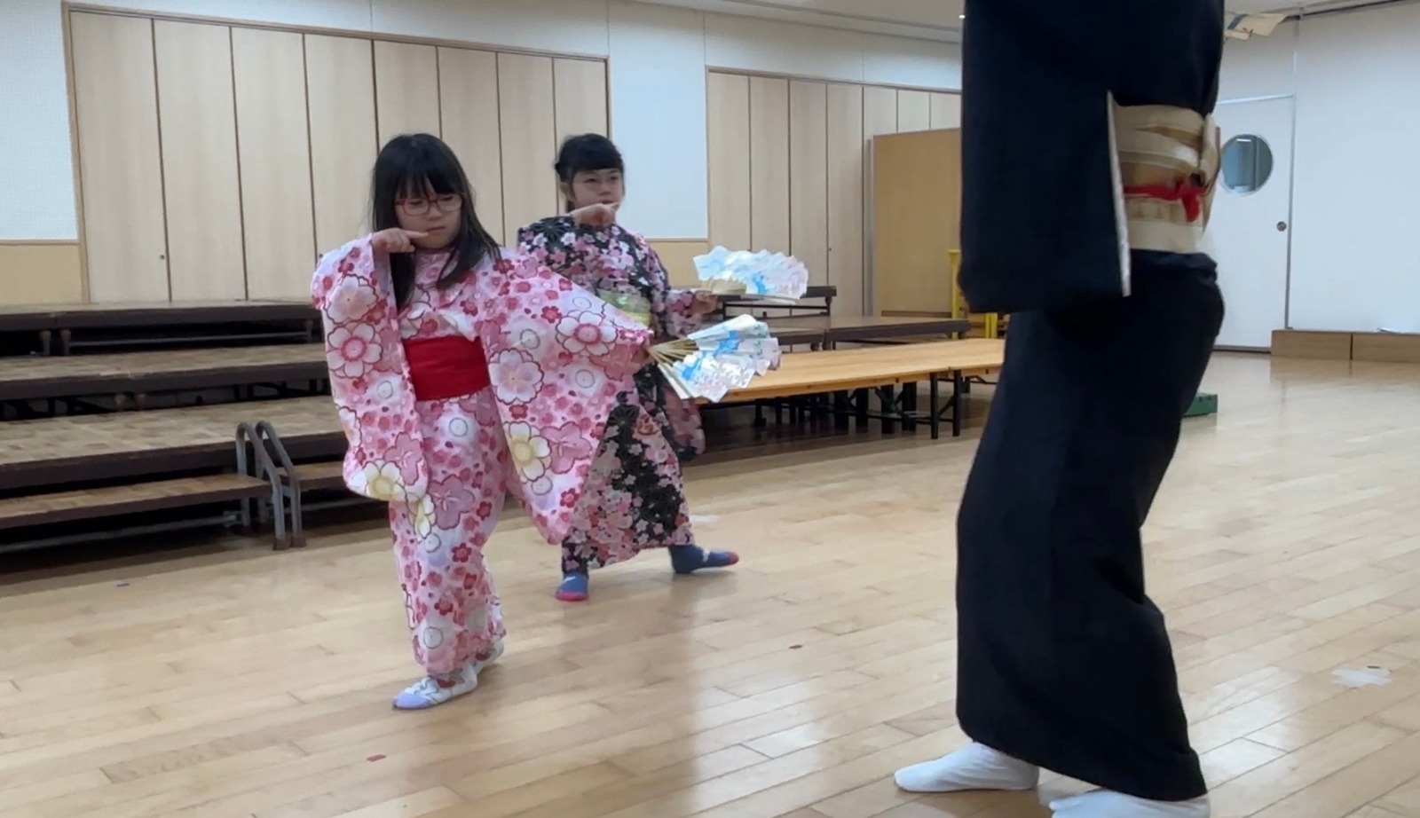 12月1月の練習では、衣笠ビーンズクラブ祭に向けてどのような動きをすると京舞らしい優雅な動きになるのかを考えながら練習に励んでいました。ポイントを聞いて実際にしてみるととてもきれいに見えることに気づいた子どもたちは、ポイントを意識してどんどんきれいに舞えるようになってきました。 衣笠ビーンズクラブ祭では、井上先生と一緒に練習したことを思い出しながら綺麗に舞うことが出来ました。発表終了後の「自信を持ってできた!」という顔がとてもすてきでした!!
