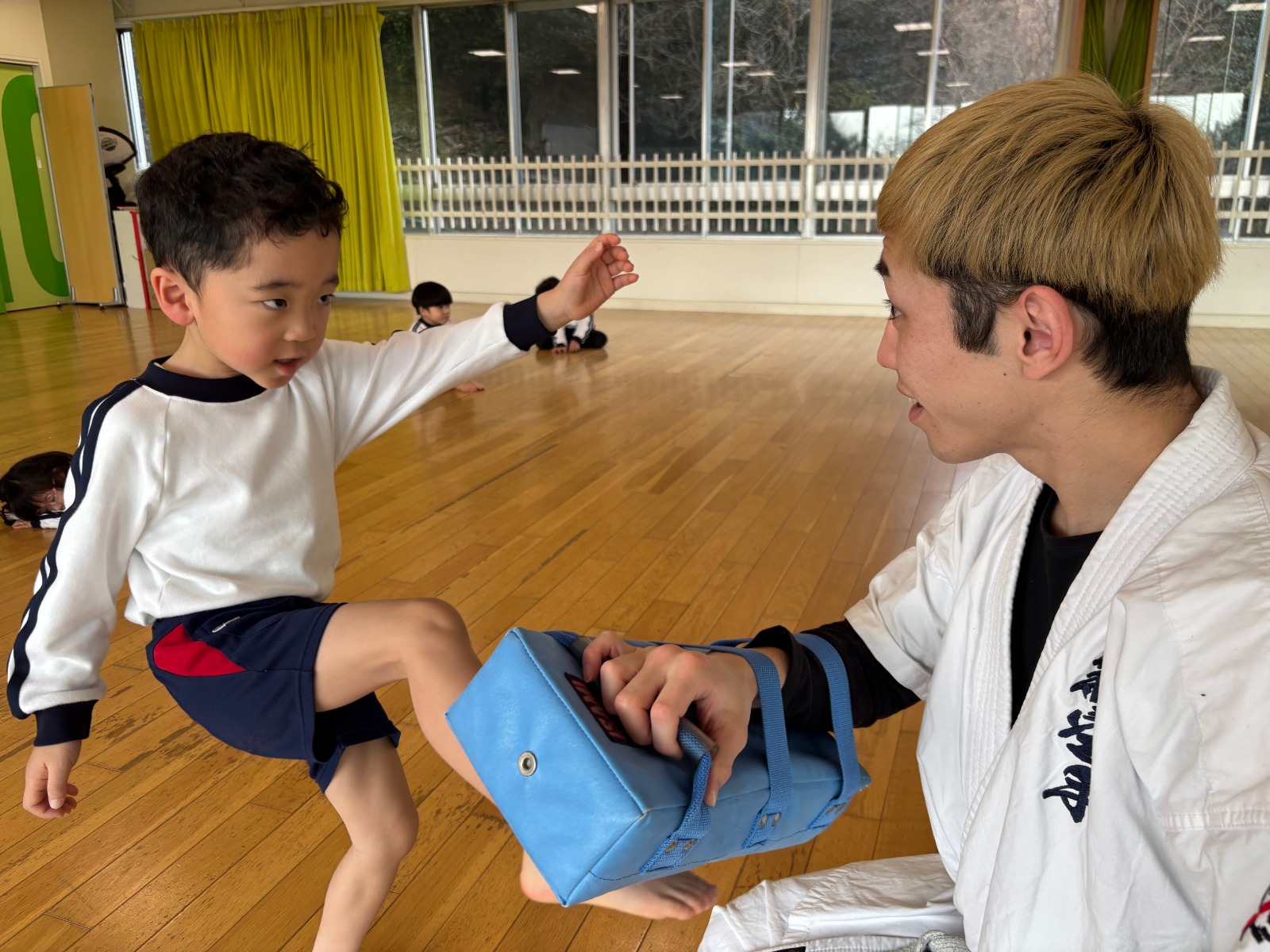 年少・年中クラスでは、キックやパンチのほかにも受けの動作も徐々に覚えてきております。