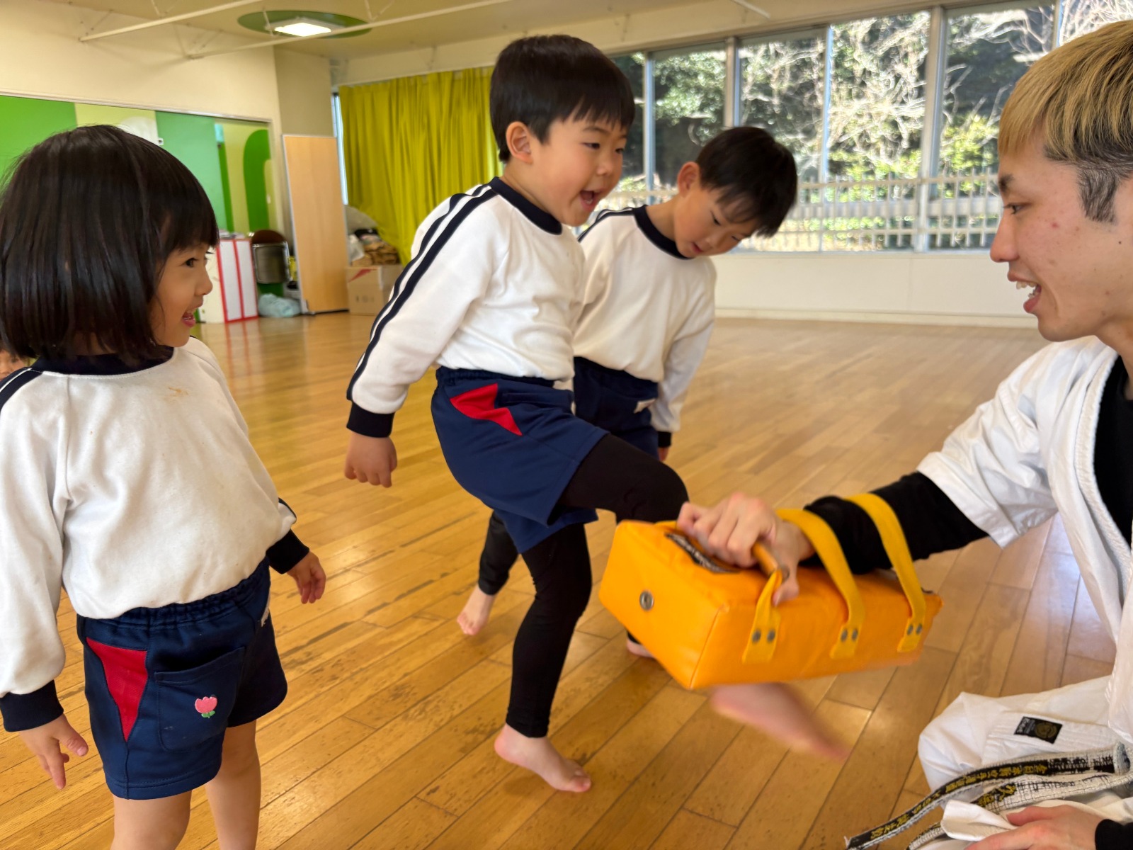 年少・年中クラスの子供たちは、新空手クラブに入部してもう1年が経ちます。