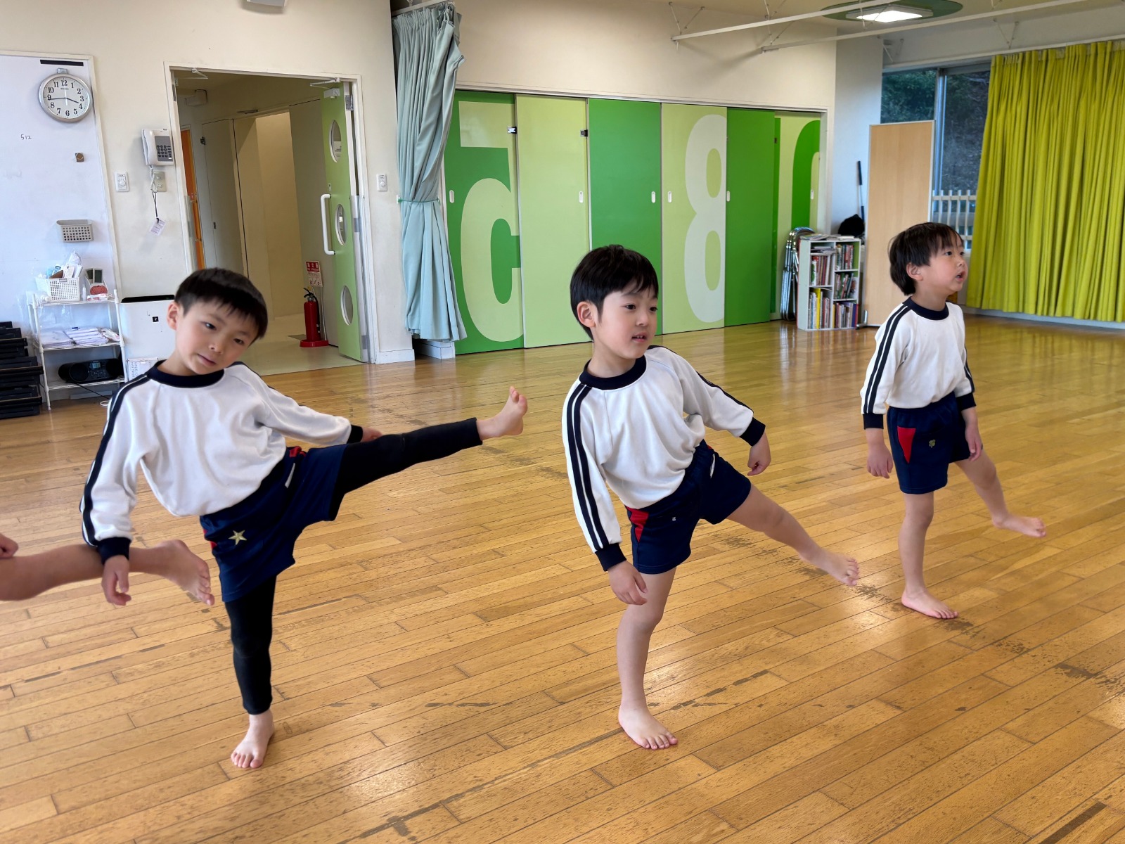 年長クラスでは、卒園を間近に少しフワフワしている様子もありましたが、練習が始まると、大きな声で励む姿がありました。8ヶ条もスラスラと大きな声を出して話すことが出来るようになってきました。