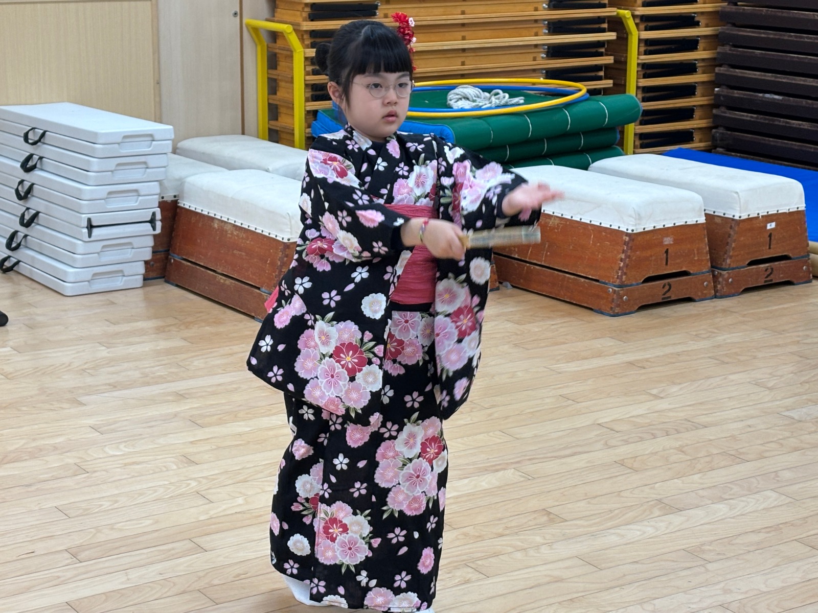 3月の所作振舞クラブでは、今までの所作の振り返りや新しい曲に挑戦をしました。ビーンズ祭で成功したことが大きな一歩となり、挑戦することに前向きになっている様子も見られました。また、楽しんで笑顔で所作・振舞クラブを行っている姿もありました。「ここはこうしたらいいの?」「こうするときれいに見える?」と講師に質問をしながら練習に取り組む姿があり、成長を感じました。
