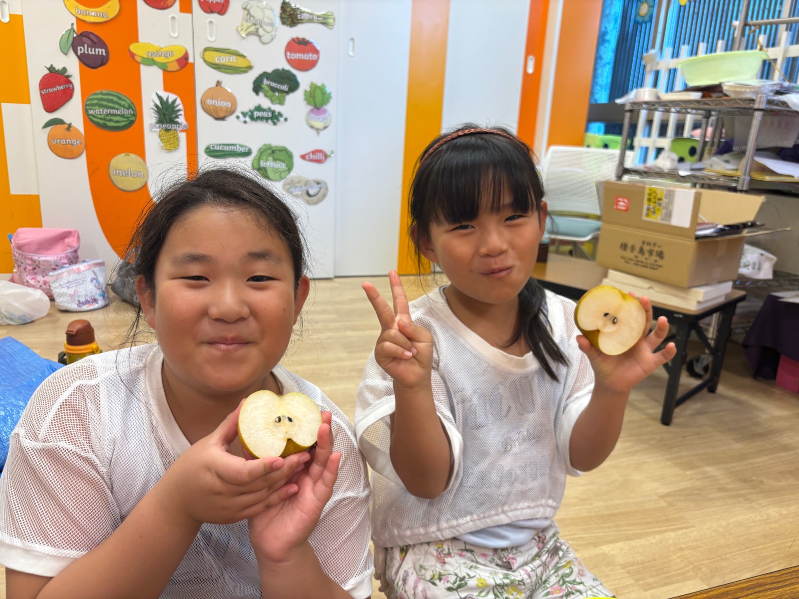 すぐに味見をした子どもたちは「どっちも甘いけど、幸水梨のほうが甘い」「糖度はどうなっているんだろう」とさまざまな感想が聞こえました。