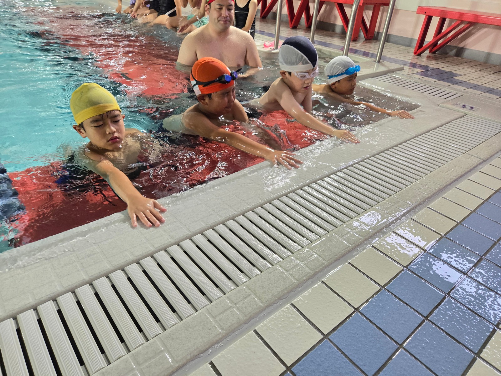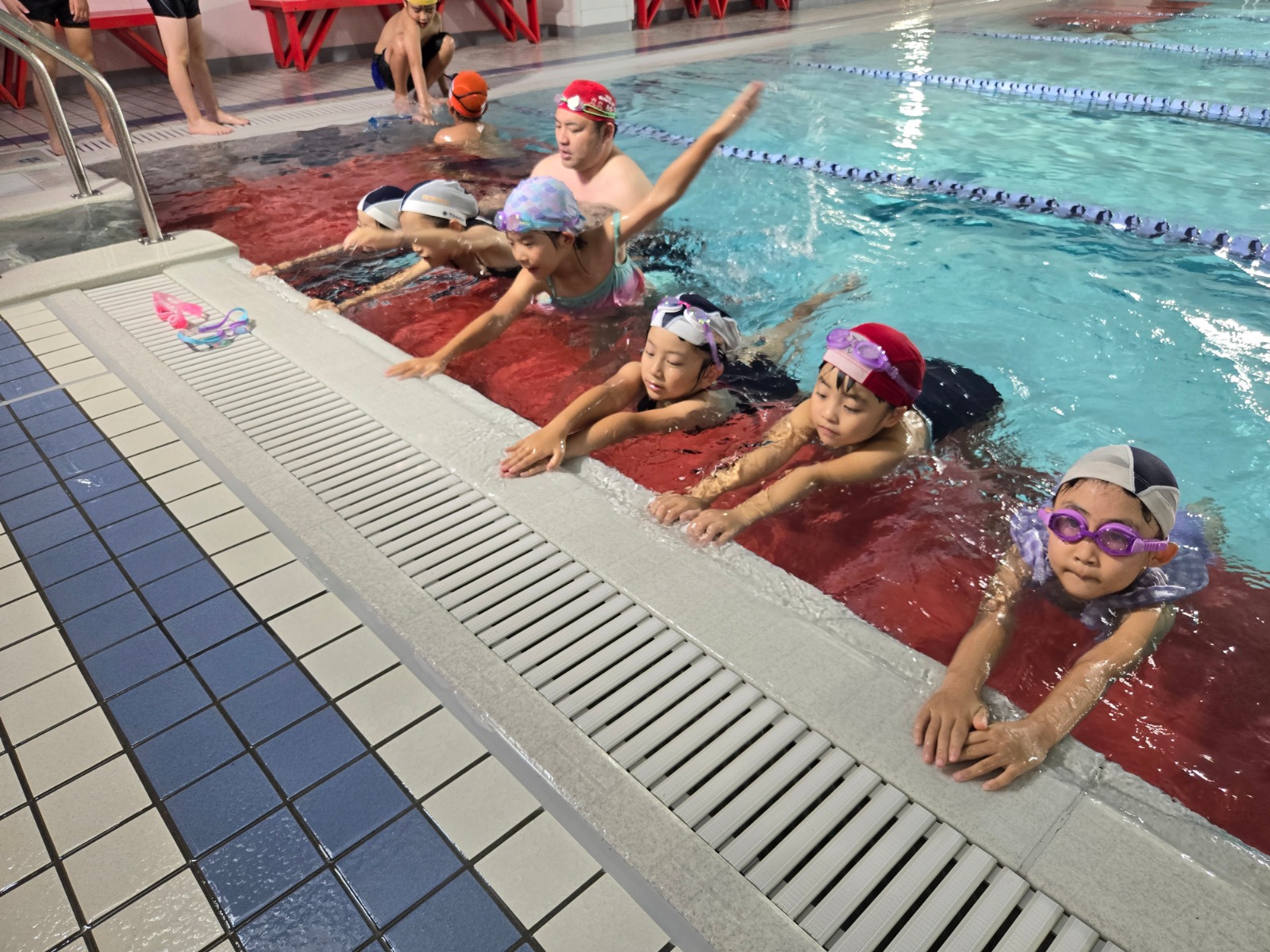 クロールの腕の動かす練習を行っております。 実際に泳ぎながらするとバランスや腕や手のヒラの角度など、いろいろと難しく苦戦する子どもたち。 壁に手を付けて、腕だけに集中して練習したり、泳ぎながら繰り返し練習して頑張っております。 クロールの腕を回す時の姿勢や焦らないことなどを忘れずに、次回のスイミングも頑張って練習していきましょう!