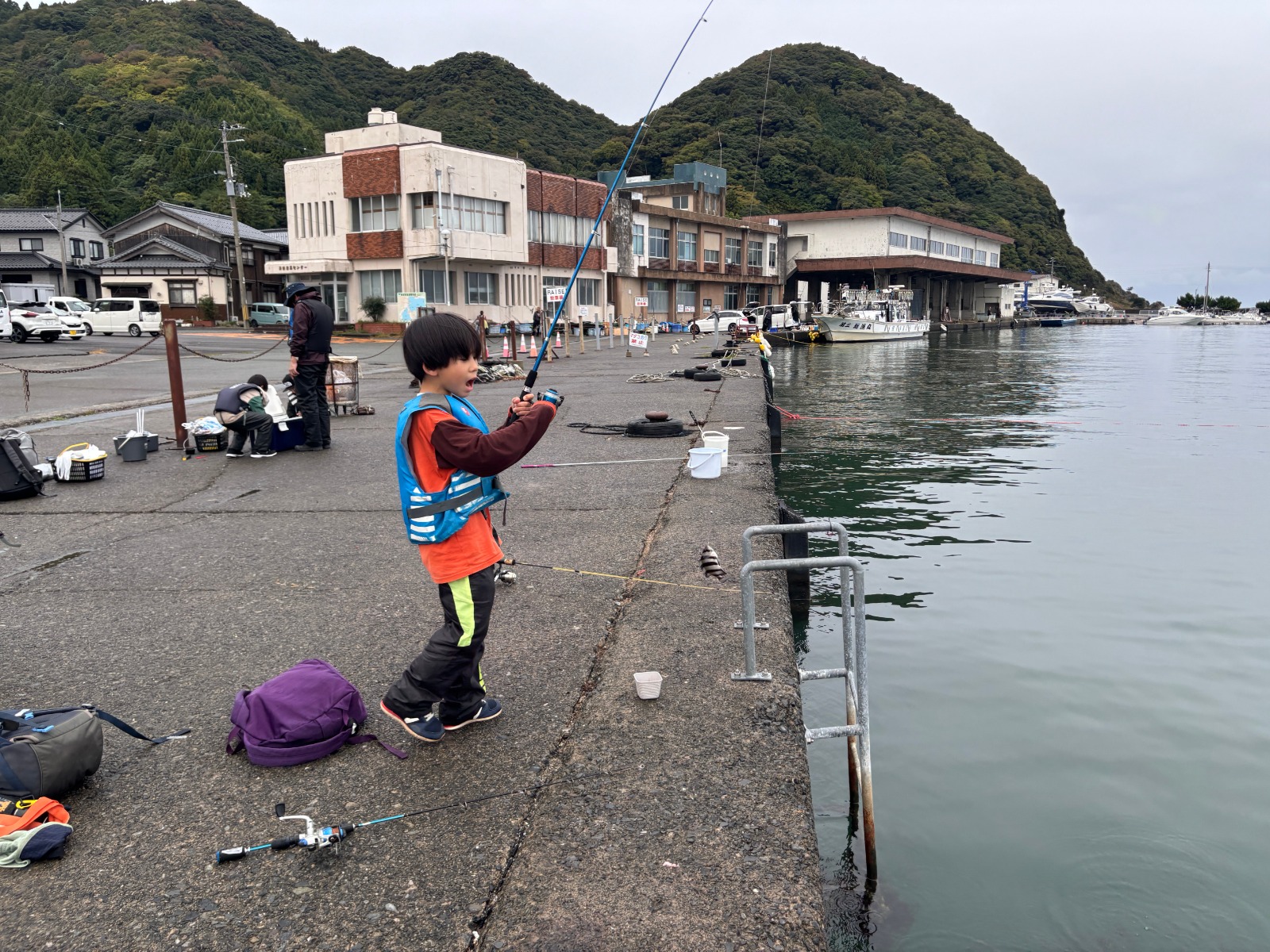 雨予報もあり、バスでは「釣れるかな」と少し不安な様子でしたが、お友だちが「今日はなんか釣れる気がするねん。絶対釣れるよ」と励ましていました。