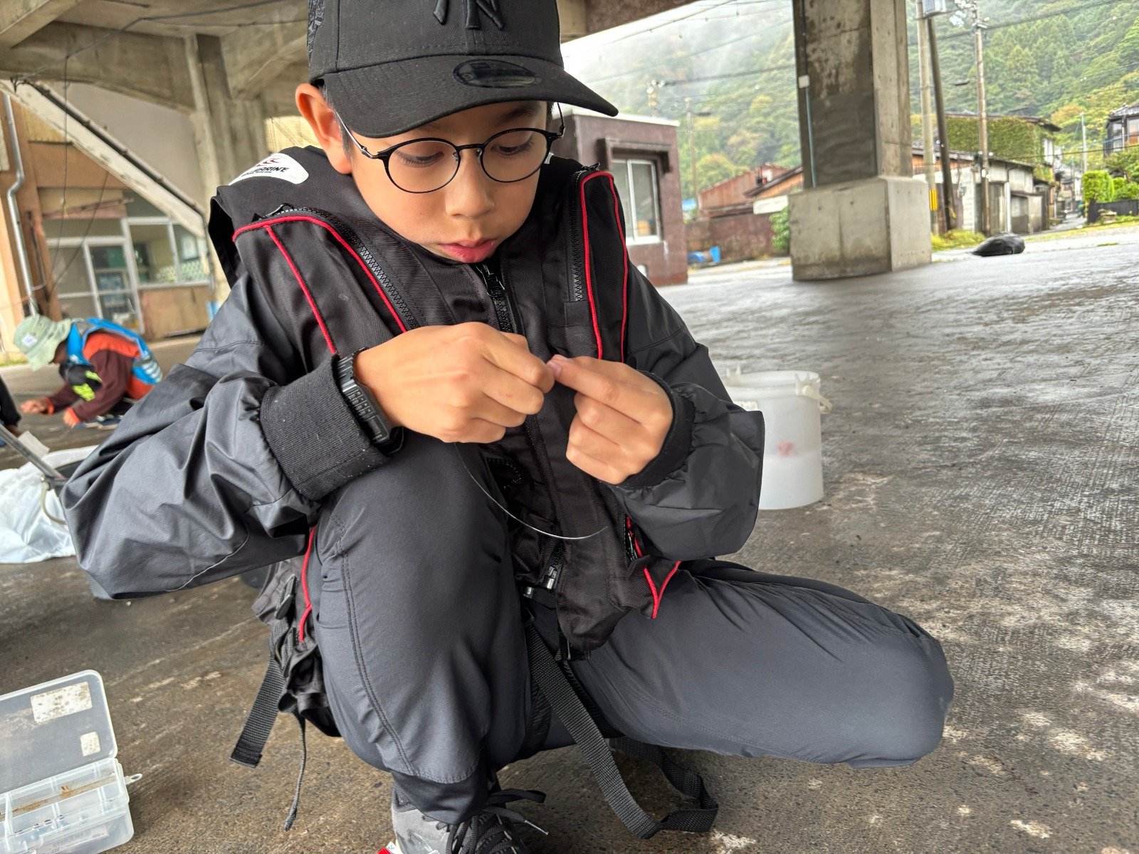 小雨が降ったり止んだりしていましたが、雨が降っていても集中して釣りに励む子どもたち。餌だけを食べられたり、糸を切られたりすることがありましたが、諦めず頑張る姿はとてもかっこよかったです。