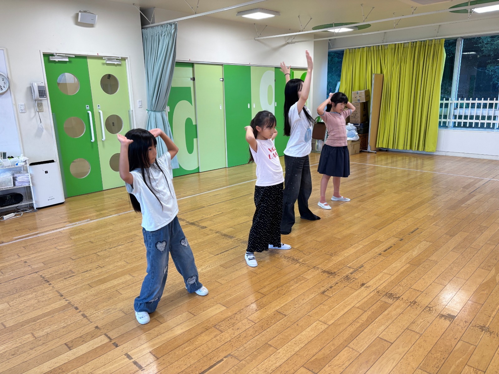 バザールの発表に向けて練習をしていました。まだ覚え切れていない部分に苦戦する様子もありましたが、皆で合わせるところを合わせられるように頑張っていました。難しい振り付けのところは「ここがすごい難しいからいっぱい練習しないと!」と繰り返し練習をしている様子もありました。みんなできれいにあわせて踊ることが出来たときに笑顔で自信をもつことにもつながりました。バザールの発表ではかっこいいダンスを見せられるようにがんばります!!