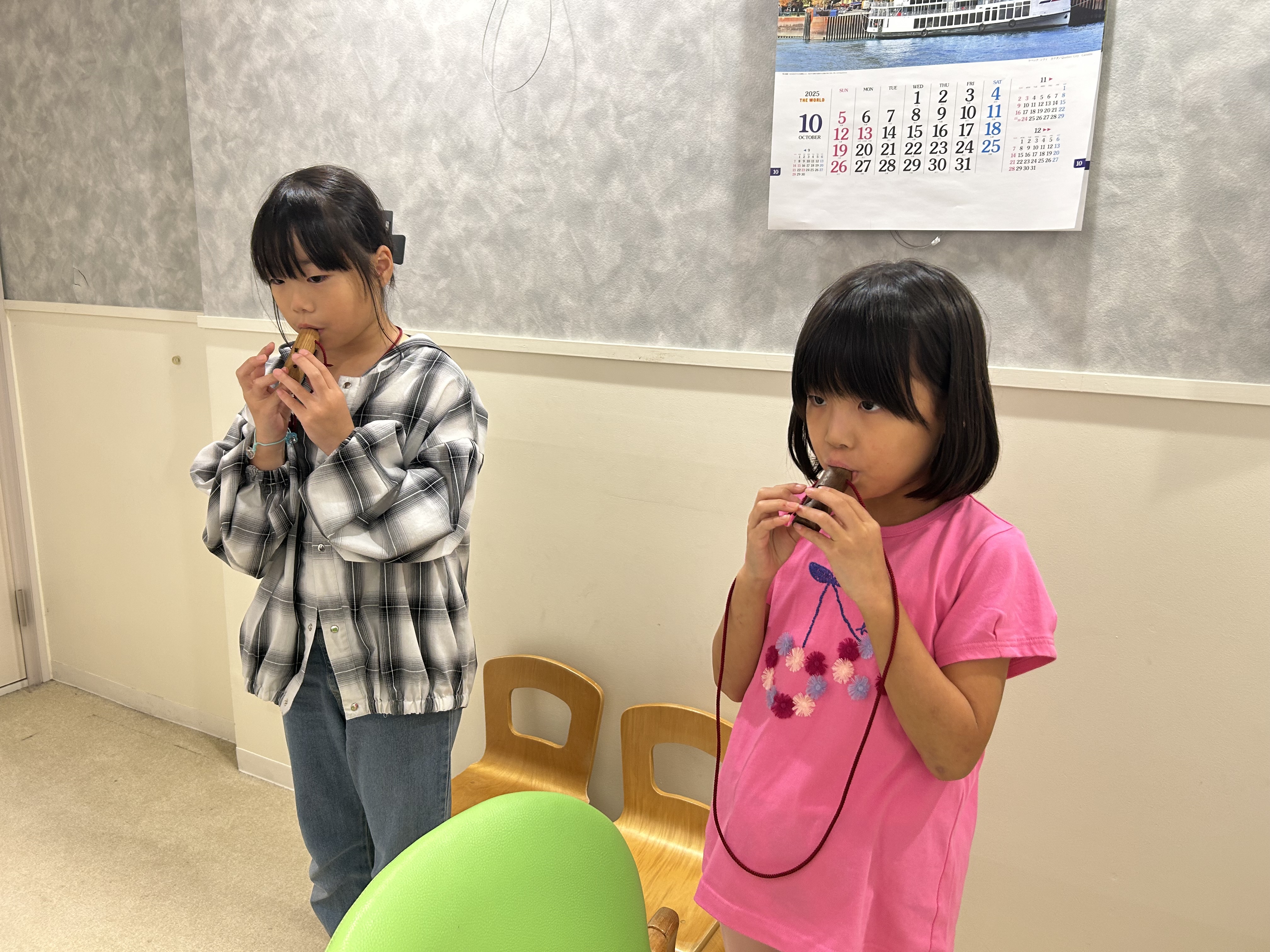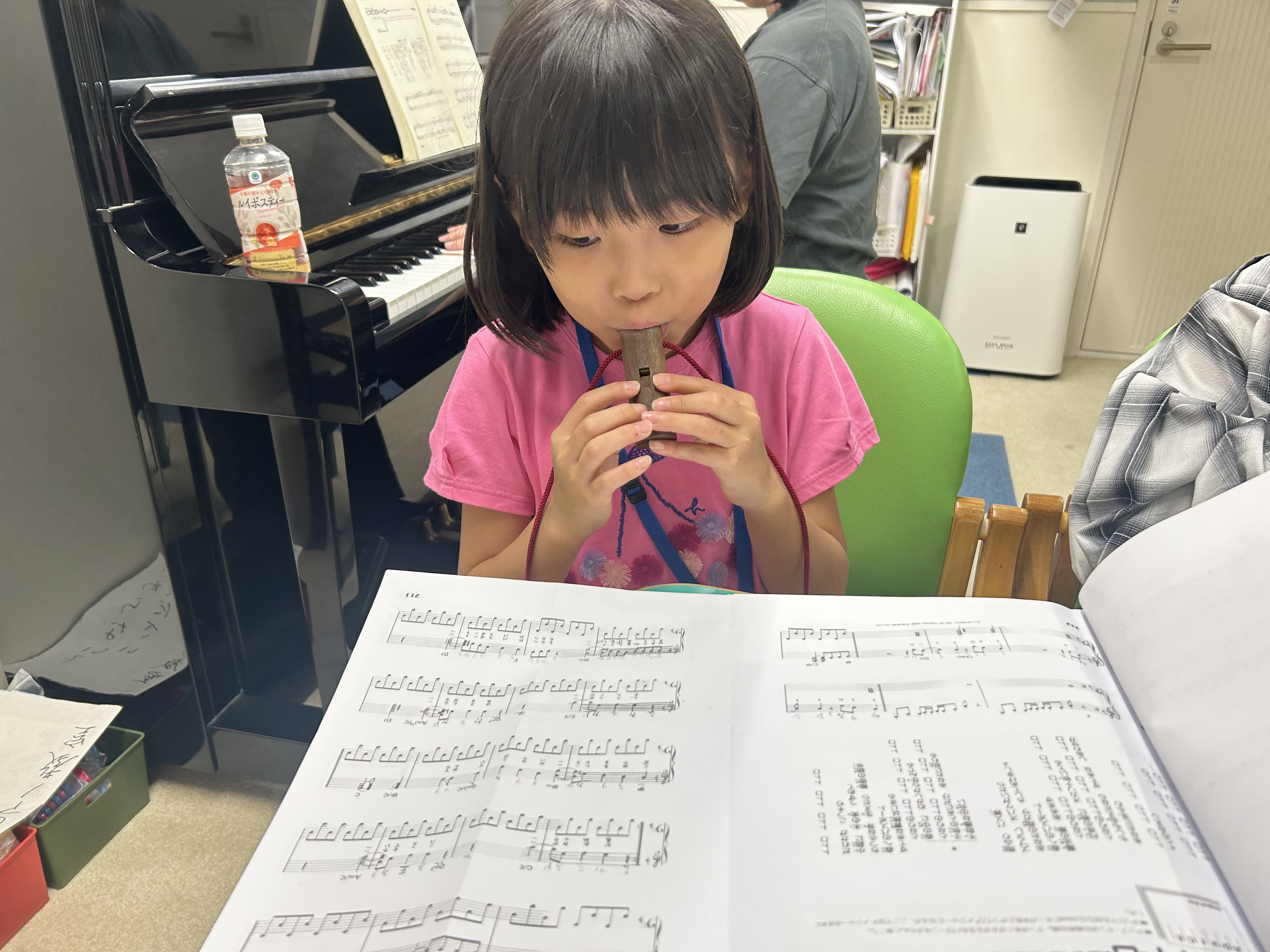 「にんげんていいな」「さんぽ」「ドレミのうた」を練習しています。 楽譜を覚えて見ずに吹けるようになってきた子どもたち。 2人でテンポを合わせて吹くことができていました。 次はこの曲を吹きたい!冬の曲も吹いてみたい!と挑戦したい曲を教えてくれます。 来月は新しい曲を練習していきます!