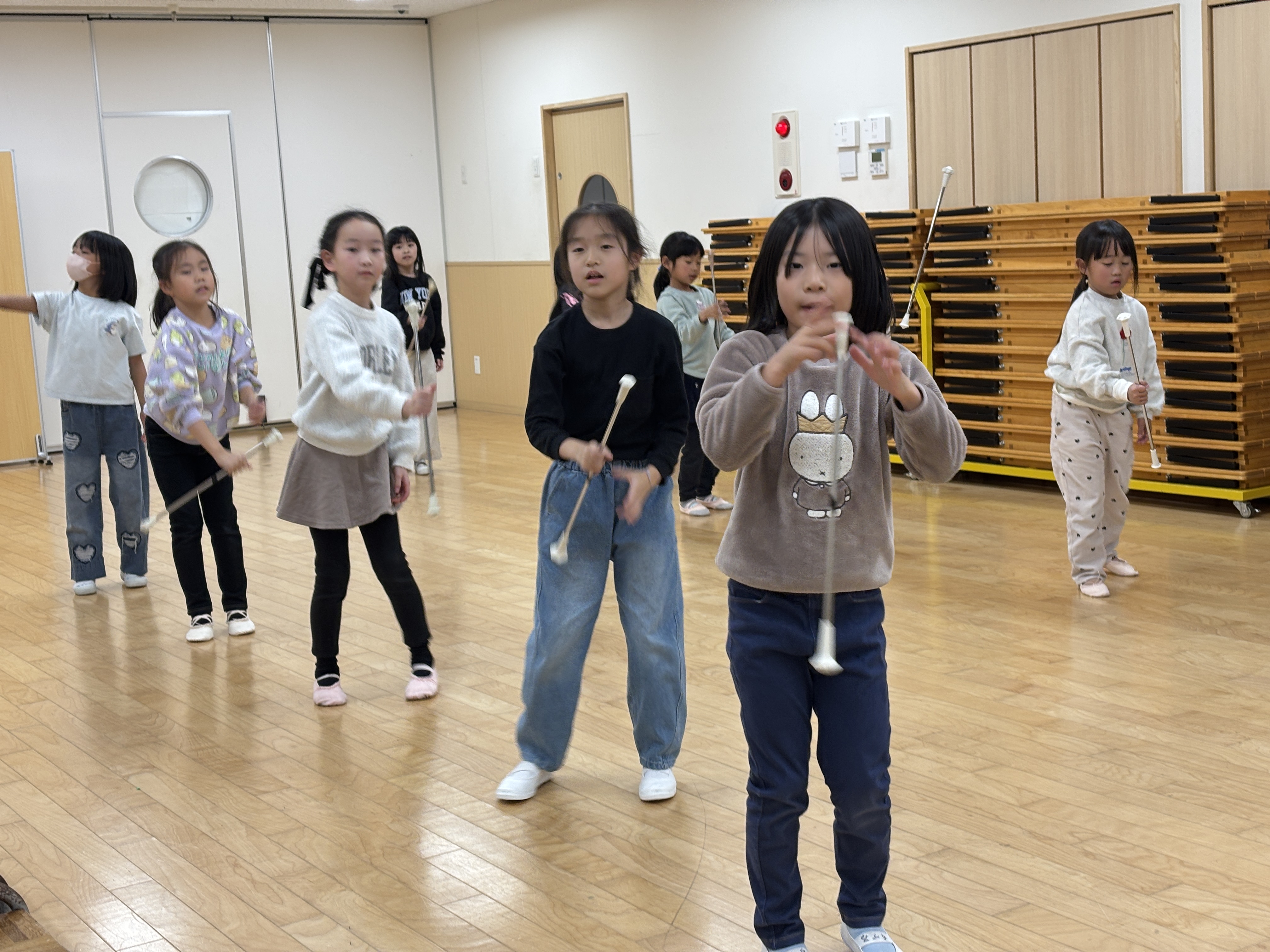 いよいよ衣笠ビーンズクラブ祭が近づいてきました。バザールの時から進化を見せるためにどのようにメリハリをつけるときれいに見えるのかなど子どもたち自身で考え、練習しています。自分たちで考えたことでより演技に集中して取り組むことが出来ました。高学年のバトンの技では、まだ少し不安なところがあったり、自信がなくて落としてしまったりということがありますが、自信をもって本番に望めるように頑張って練習をしていきます!!