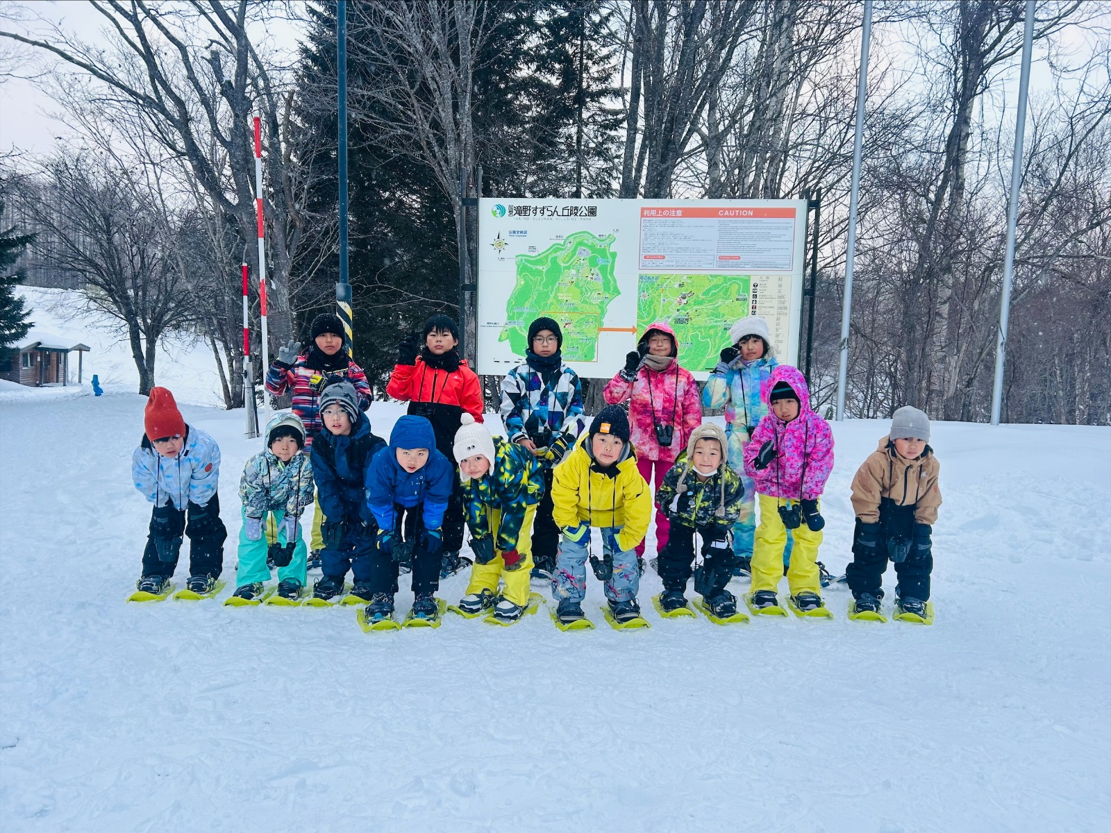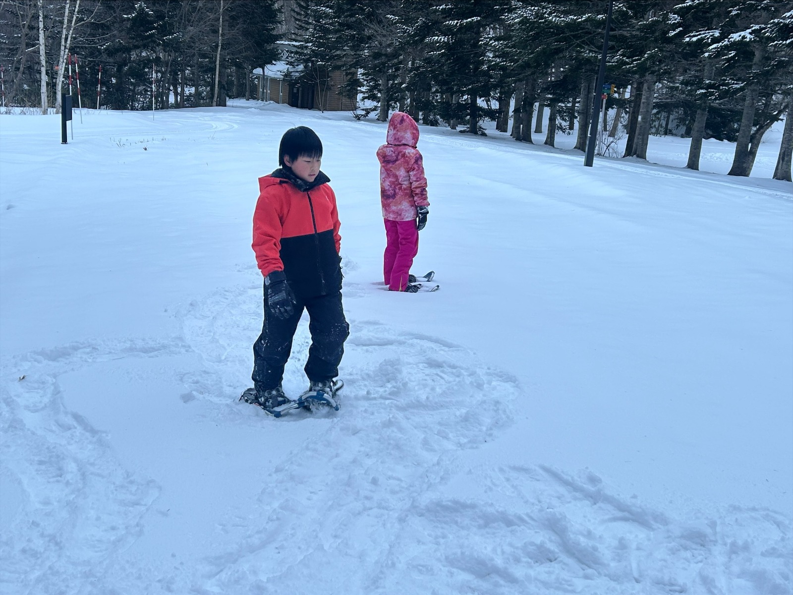 スノーシューが外れてしまったお友達に優しく声をかけて助けてあげる姿も見られました。