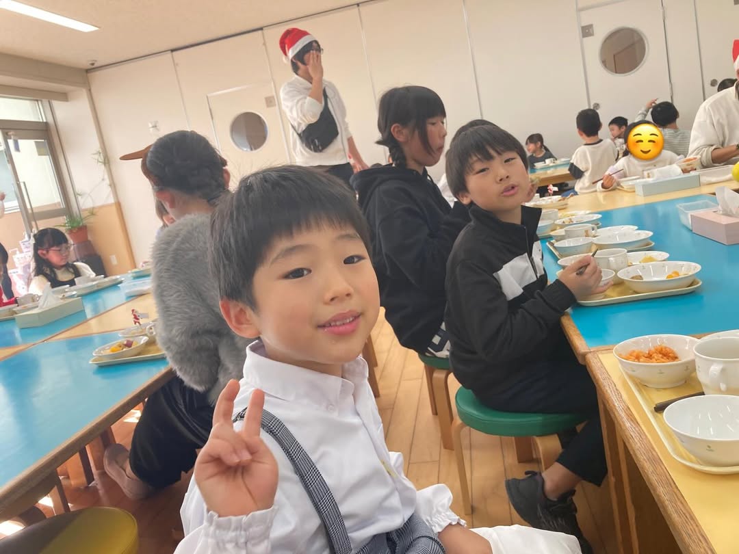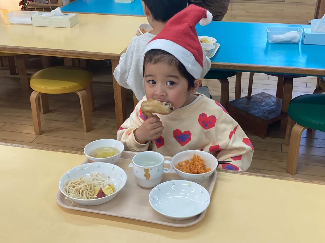 ゲームをしたり、クリスマスランチを食べたりして、とても楽しそうな子どもたち。