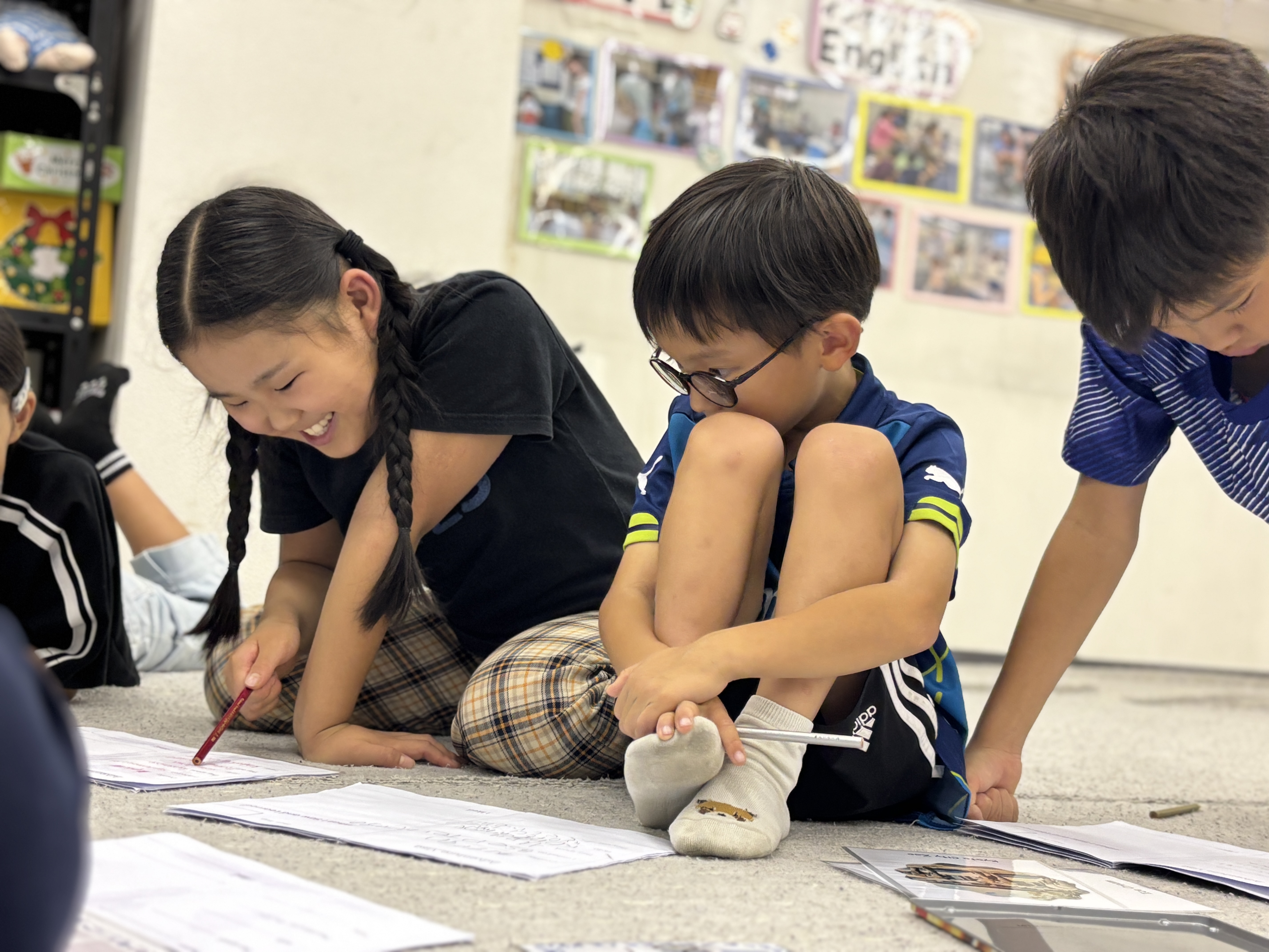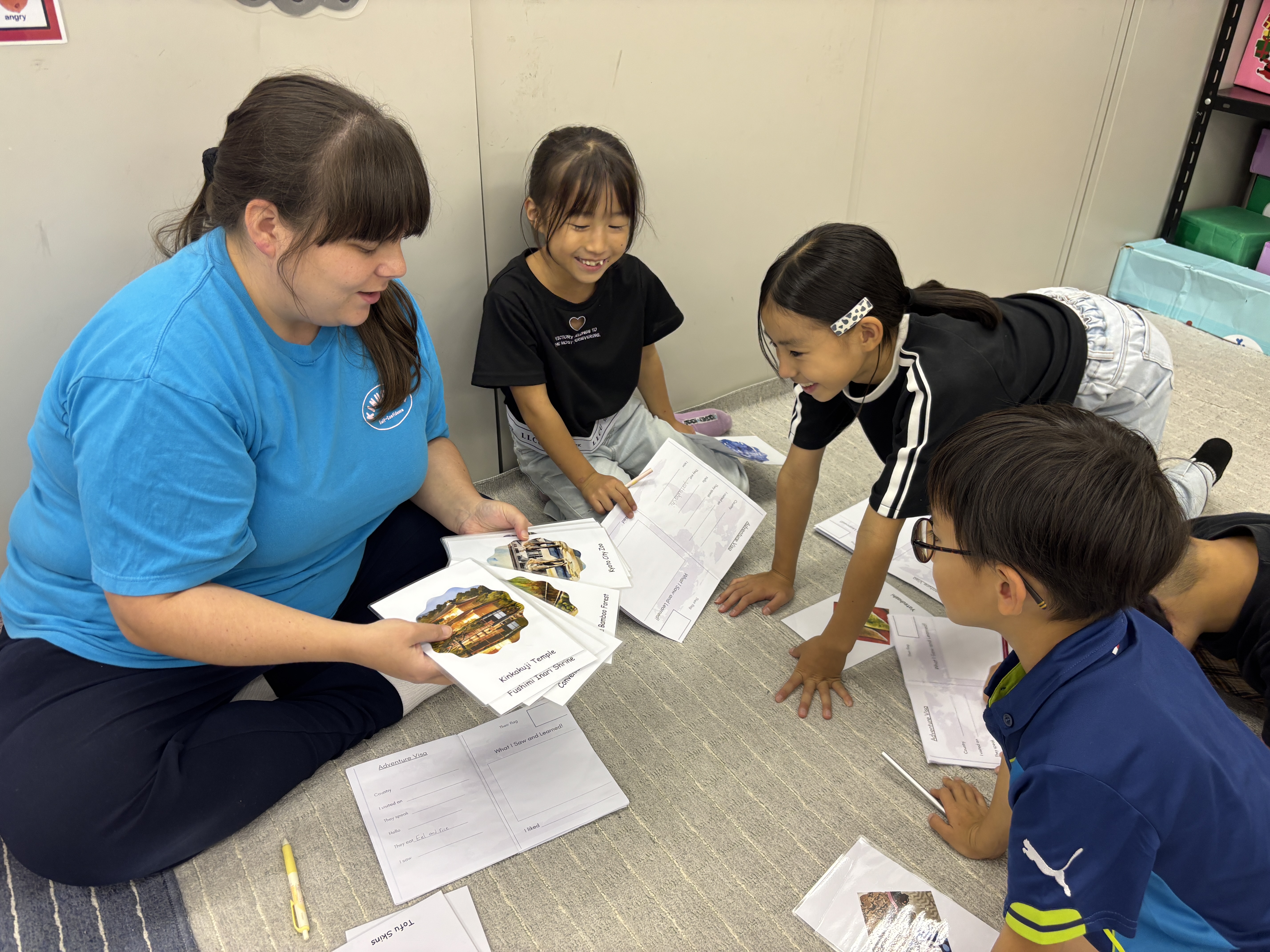 ゲームをしながら英語を学んでいきます。 今月は、京都の有名な場所や食べ物を学びました! 写真を見て大きな声で建物や食べ物の名前をいう子どもたち。 自分のパスポートも作っていきます! 名前と好きな場所を書き自分だけのパスポートが出来上がり嬉しそうに見せてくれます。 分からない言葉があると、「これは英語でなんていうの?」と積極的に質問をすることができていました!