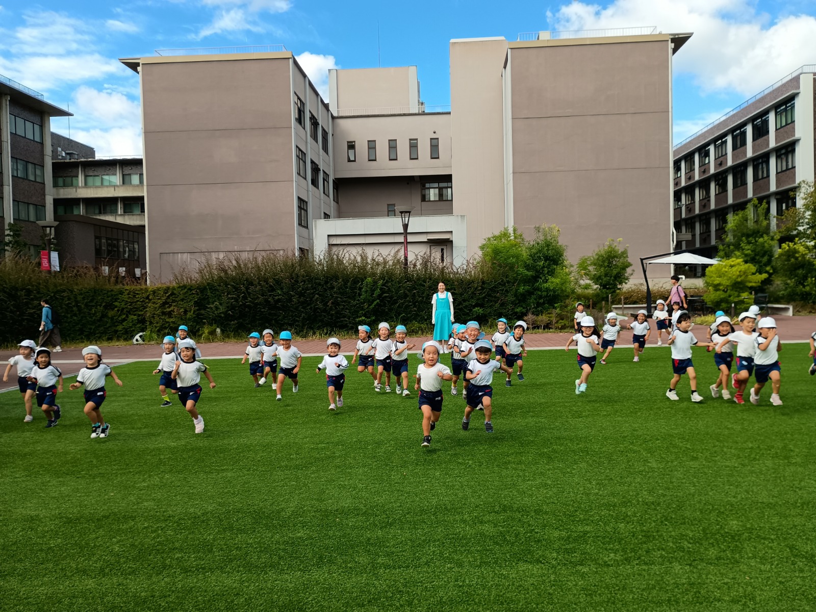立命館大学では、芝生でたくさん遊びました。