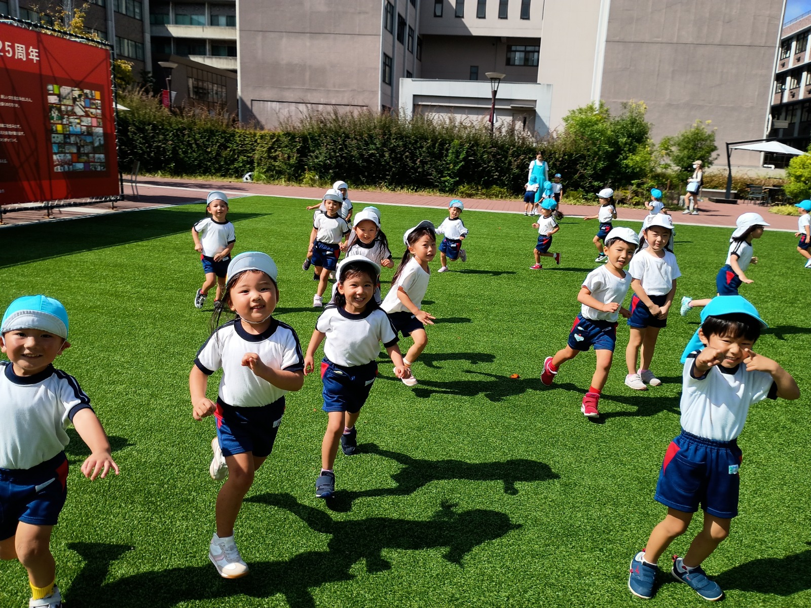 きく組さんに負けないくらい速く走る!とお兄ちゃん、お姉ちゃんと追いかけっこを楽しんでいましたよ!散歩から帰った後はランチを一緒に食べ、もっと仲良くなりました✨