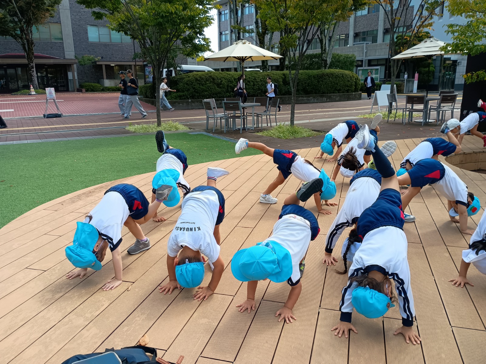 先日、きく組さんと一緒に立命館大学へ散歩に行きました!初めてきく組さんと散歩にいけると大喜びの子どもたち!幼稚園から立命館大学まできく組さんと手をつないで出発し行き帰り、仲良く手をつないで歩くことができました!
