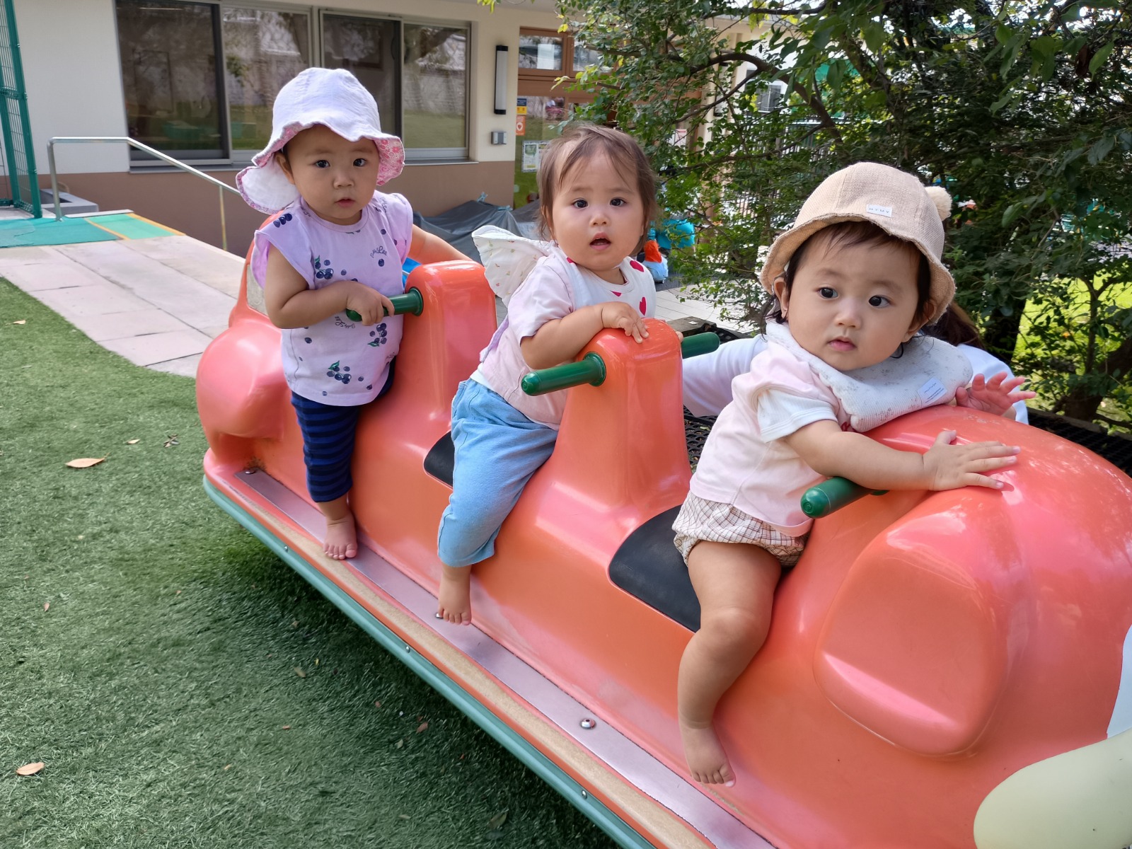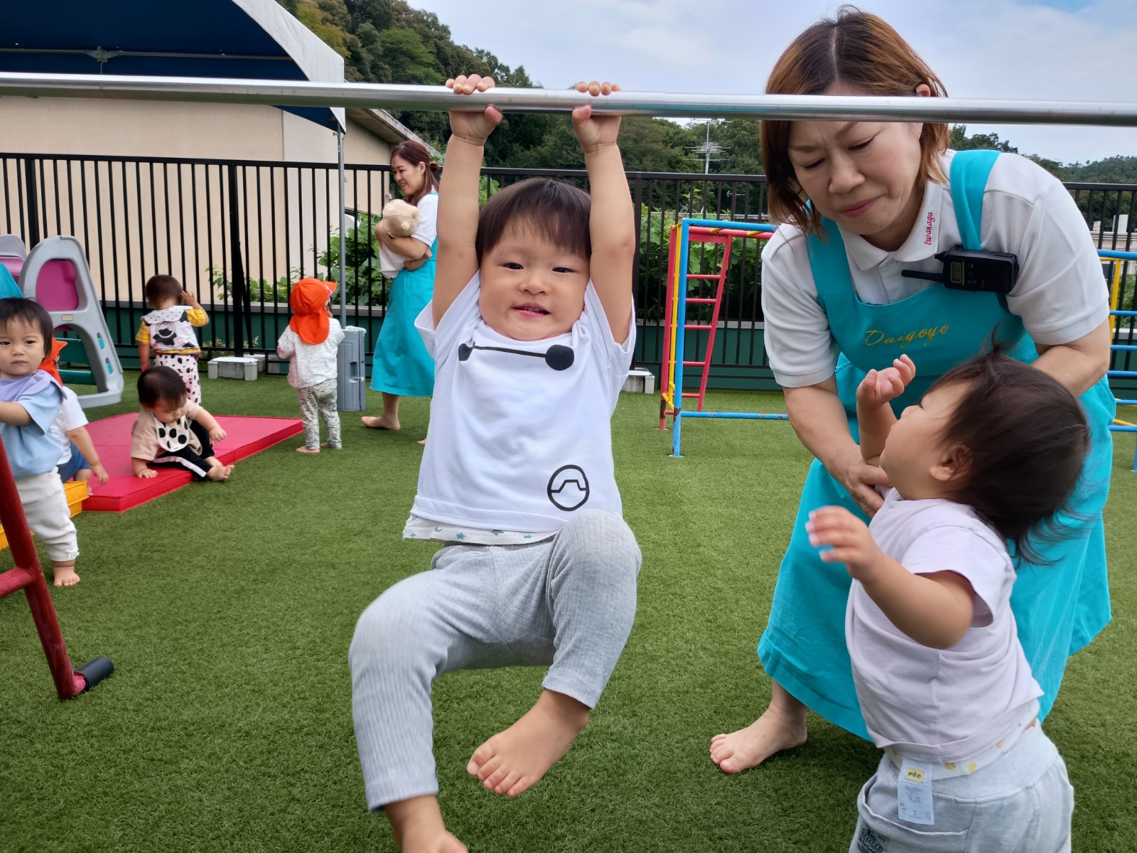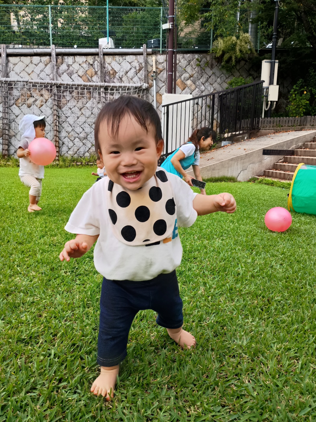 暑さもだいぶおさまり、気持ちよくお外で遊べるようになってきました。 今の時期にいっぱいお外で遊べるように、芝生、上園庭、下園庭、屋上、お砂場、お散歩などの活動をたくさん取り入れています。 芝生やお砂場は、素足で直接触れて感じることが苦手なお友だちもいますが、素足や素手で色々感じることは、脳の発達にとても良いことです。いっぱい遊んで慣れていって、楽しいと思えるたくさんの経験を積んでいきたいです(^^)/