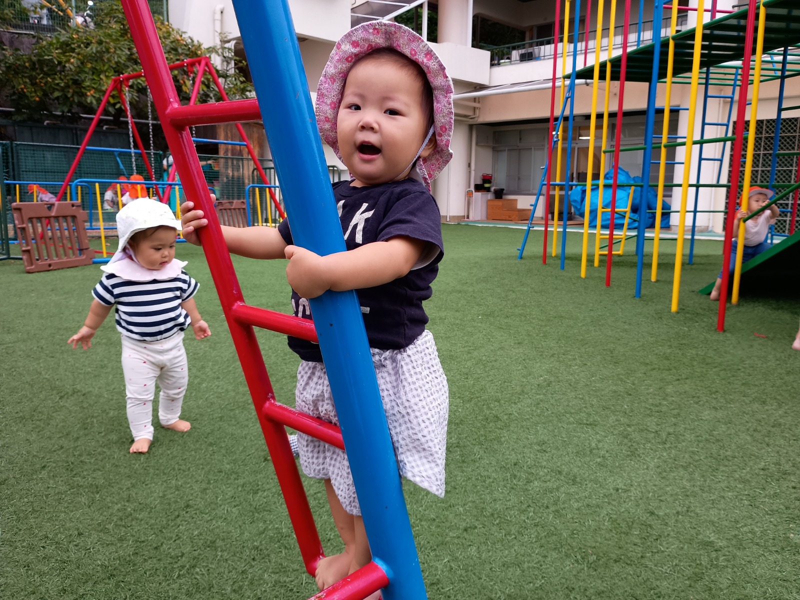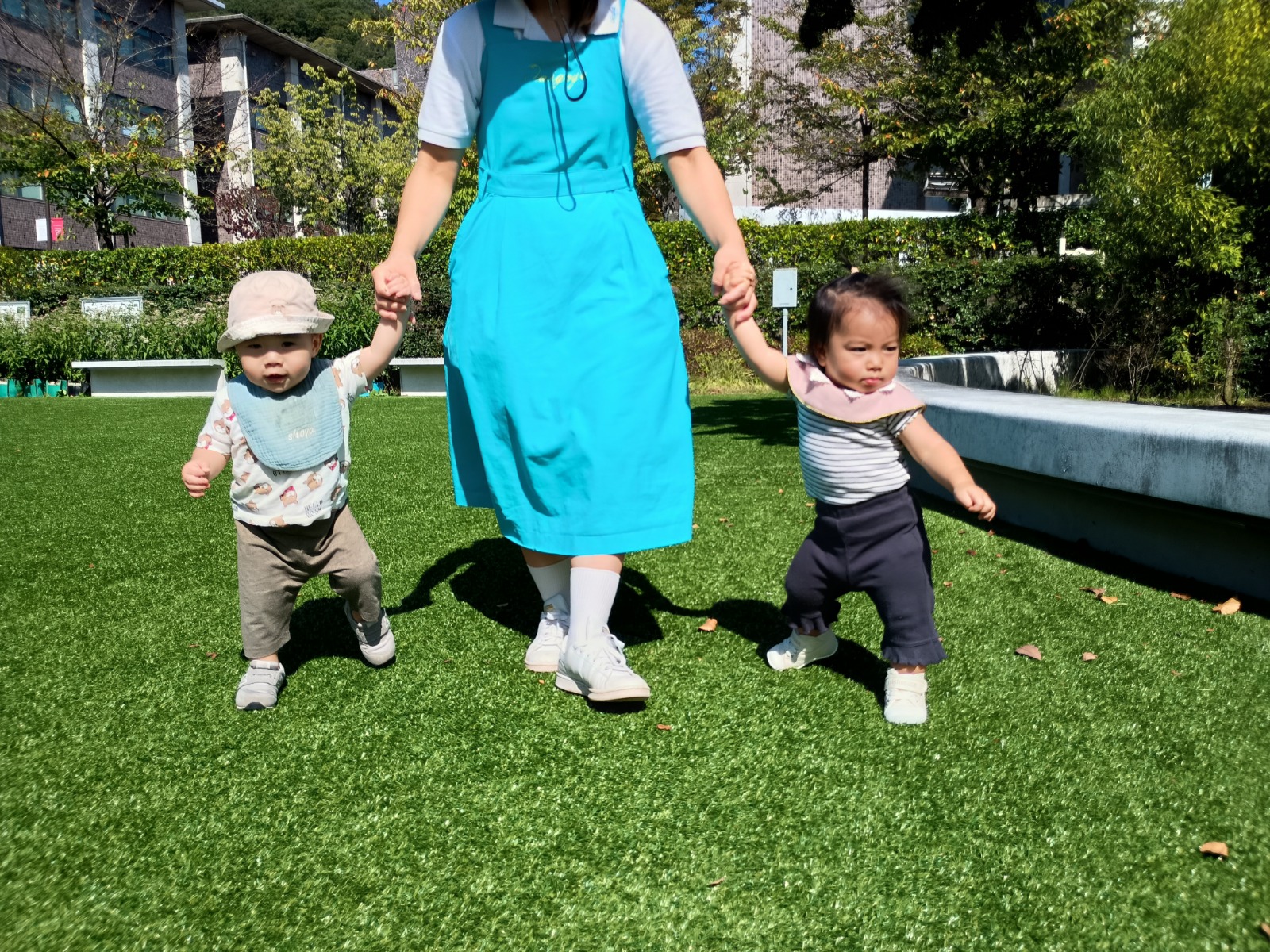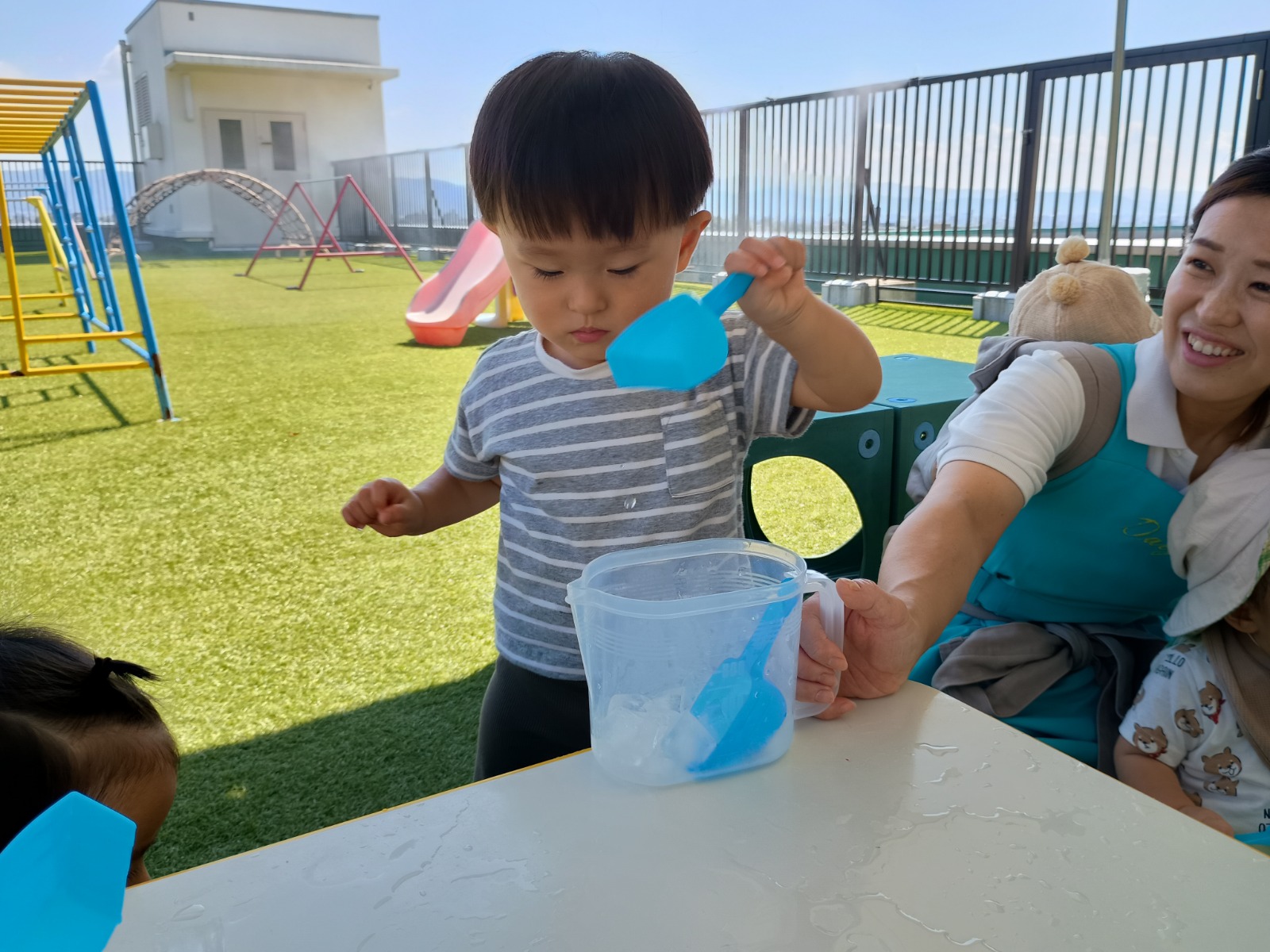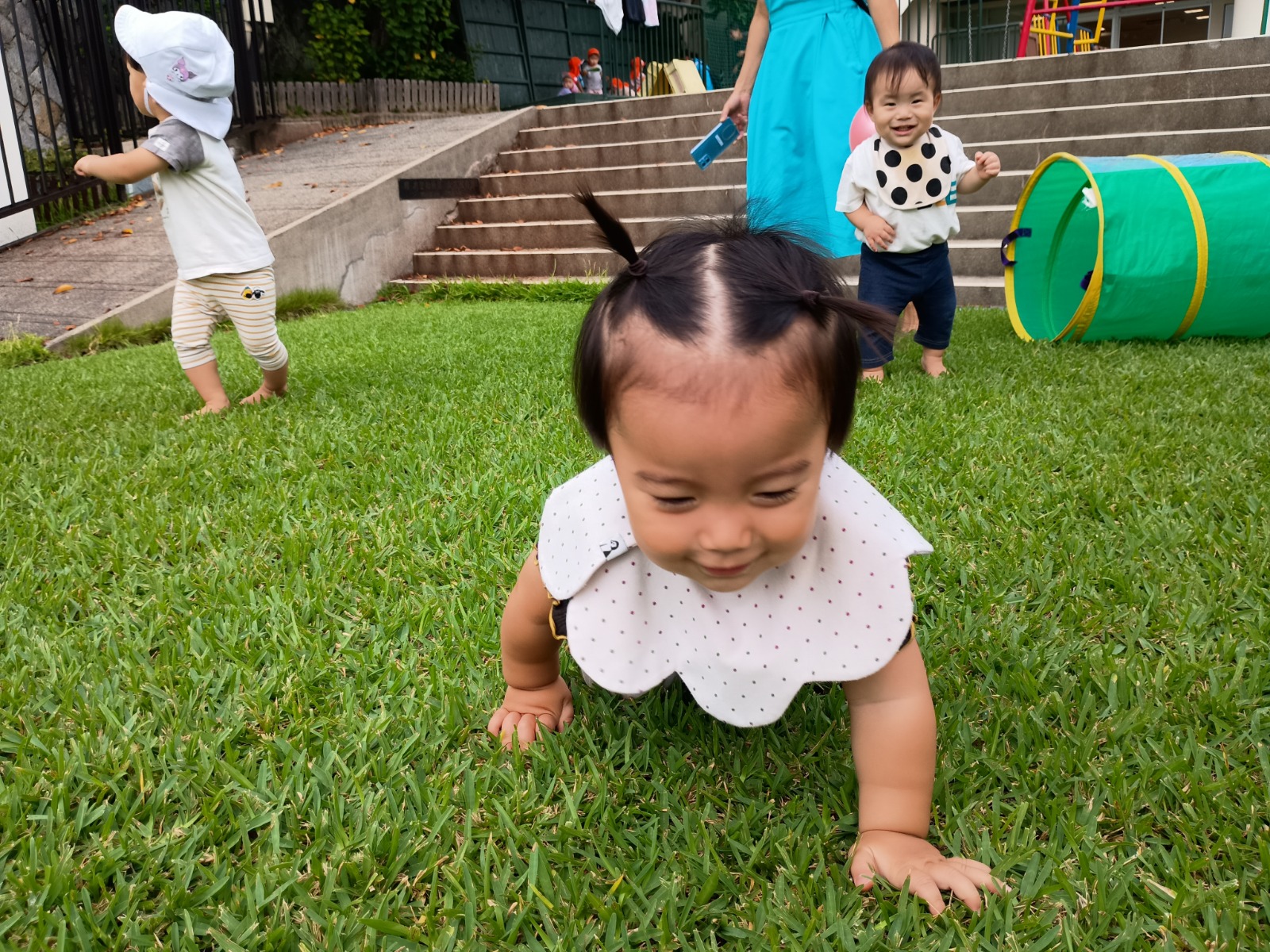 暑さもだいぶおさまり、気持ちよくお外で遊べるようになってきました。 今の時期にいっぱいお外で遊べるように、芝生、上園庭、下園庭、屋上、お砂場、お散歩などの活動をたくさん取り入れています。 芝生やお砂場は、素足で直接触れて感じることが苦手なお友だちもいますが、素足や素手で色々感じることは、脳の発達にとても良いことです。いっぱい遊んで慣れていって、楽しいと思えるたくさんの経験を積んでいきたいです(^^)/