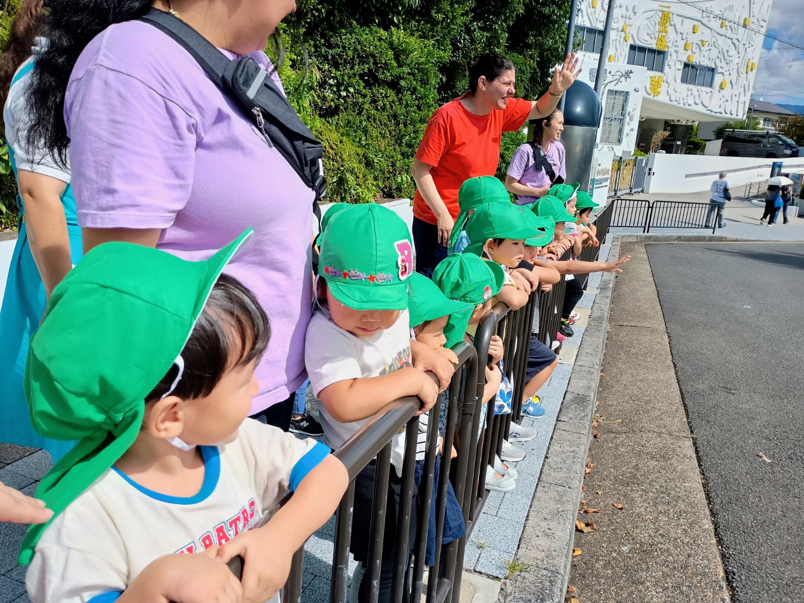 バス停では、バスやトラックの運転手さんに「バイバーイ!」と手を振り、笑顔で振り返してくれる運転手さんに大喜びの子どもたちがとても可愛かったです(^^)