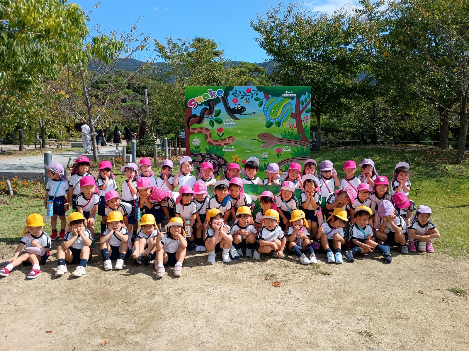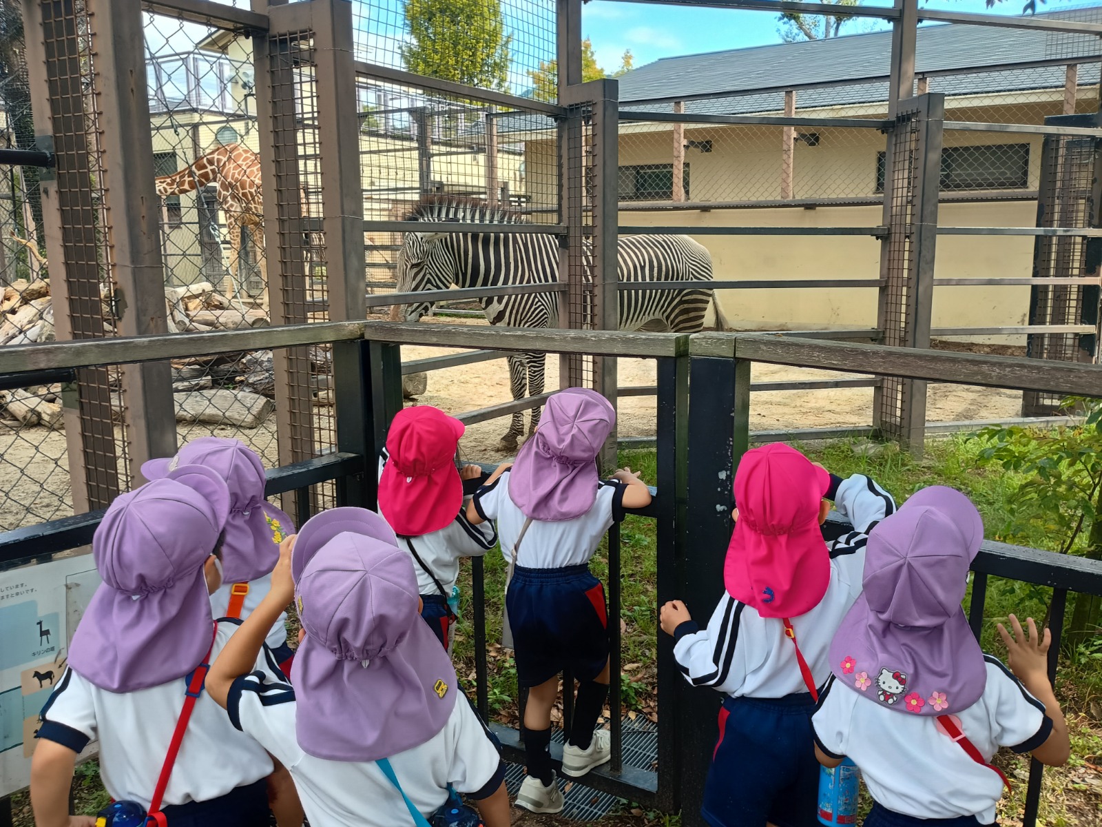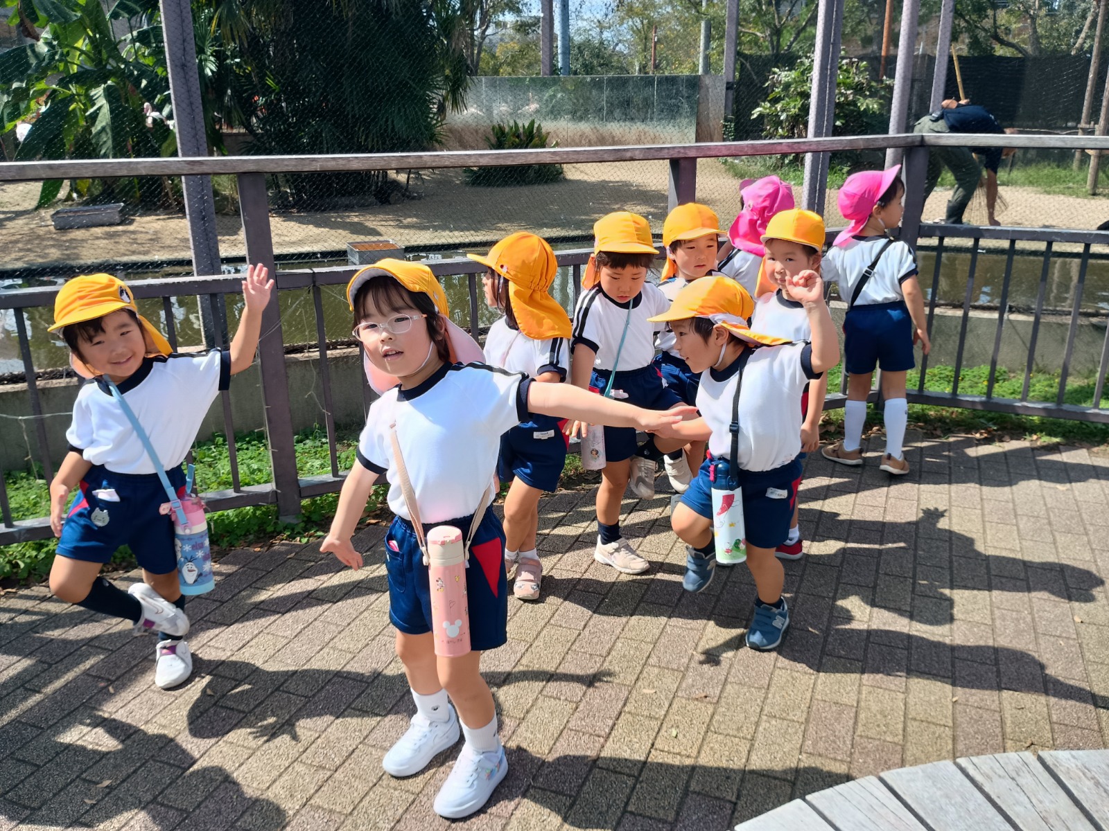 気持ちのよい気候の中、お芋掘り・動物園遠足を楽しみました。 お芋掘りでは、みんな泥だらけになりながら必死に土の中を探していました。お芋は太くて立派なものから変わった形のものなど、個性豊かです。「でっかいお芋の見つけたー‼」と嬉しそうに掘っていました。 動物園遠足では、いろんな動物をいっぱいみてきました。 みんな興味深々でみいっていました。 また、朝から楽しみにしていたお弁当の時間も大喜びで、お友だちとお弁当を見せ合いながら残さず食べていました。