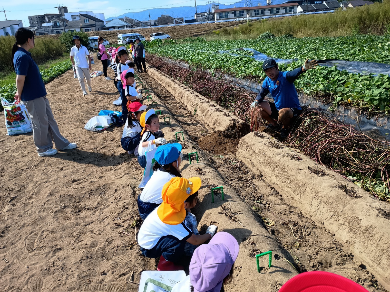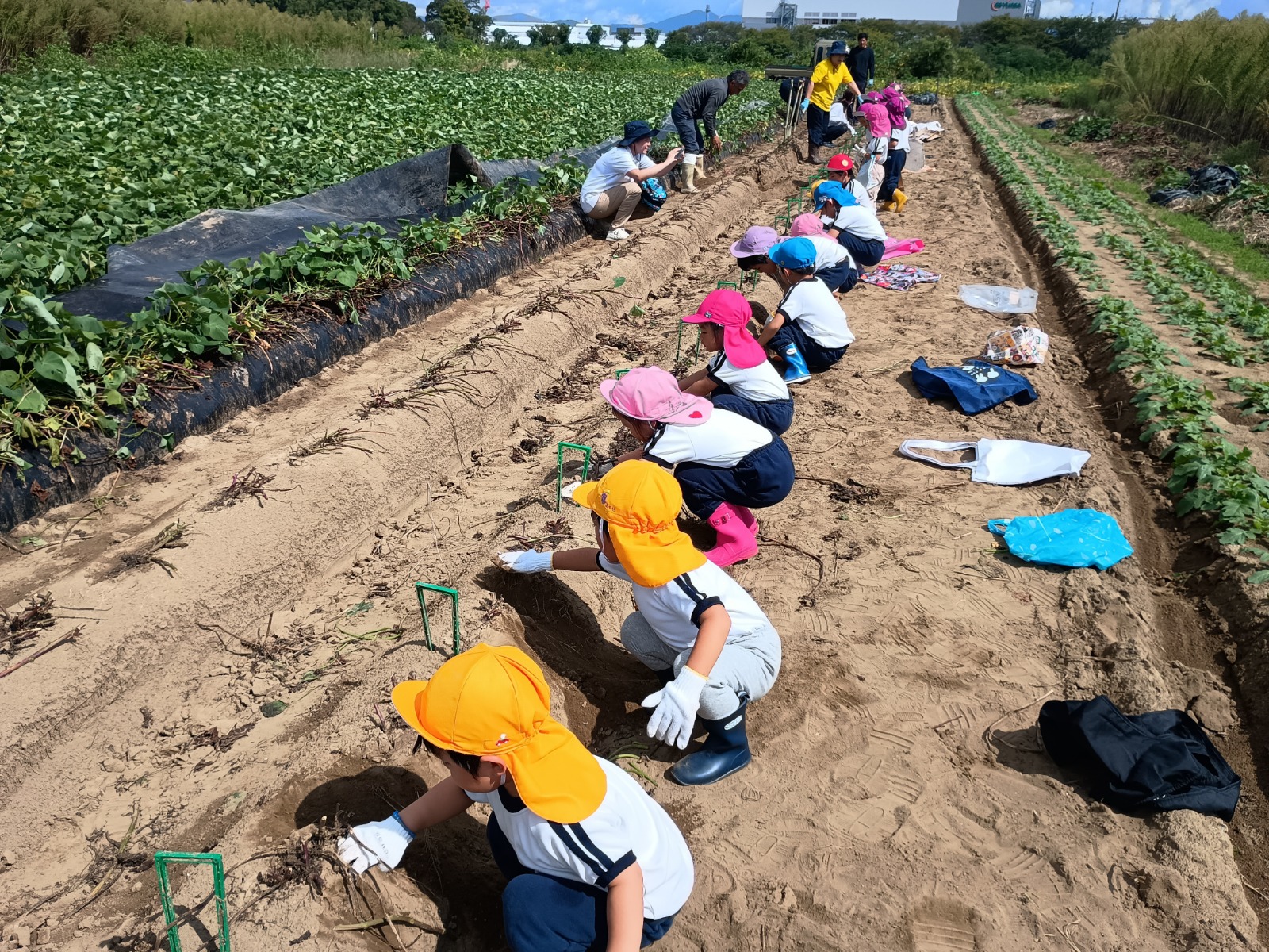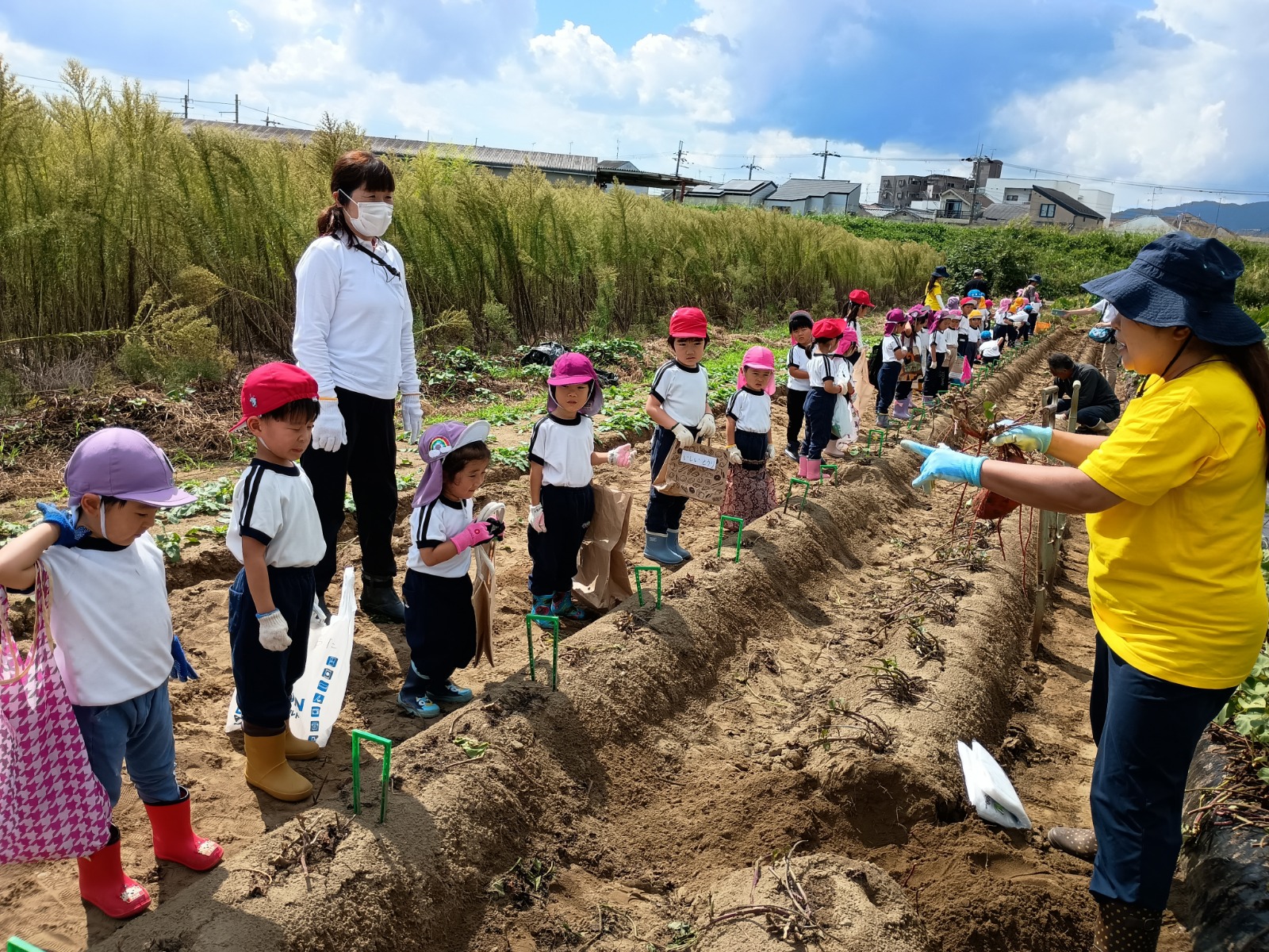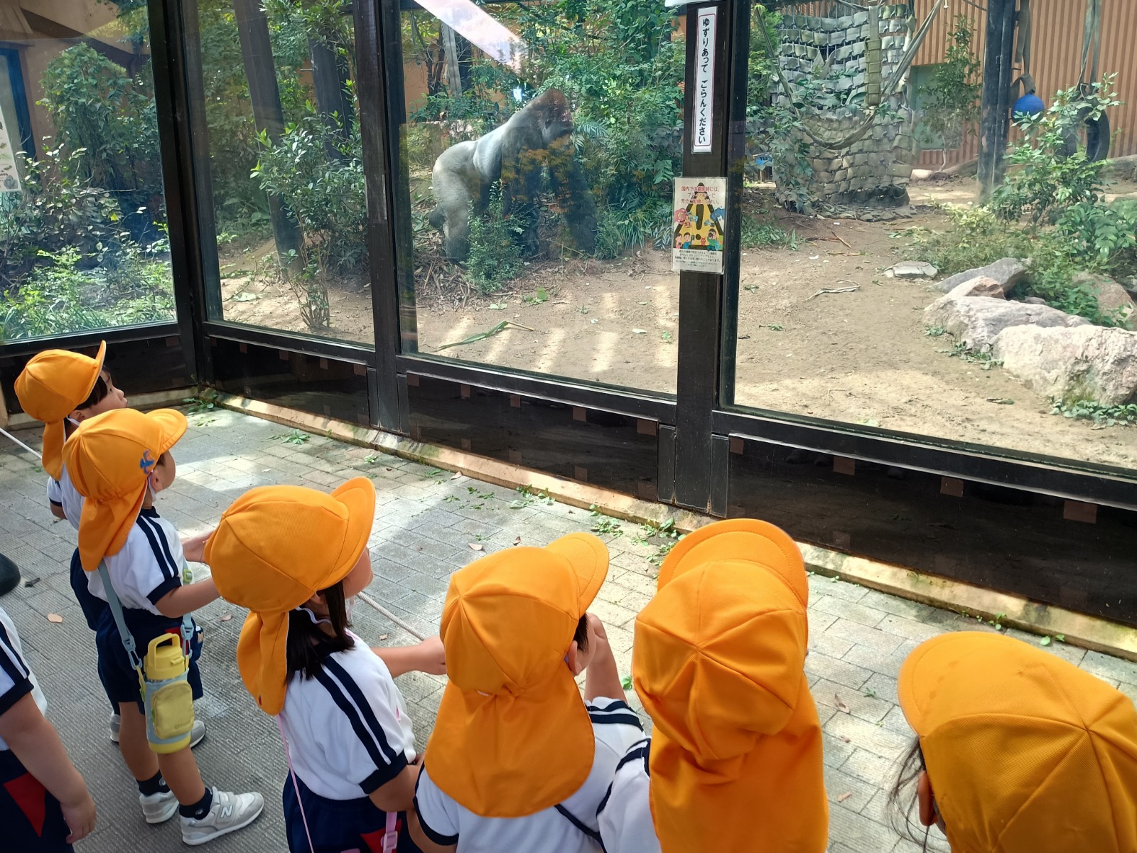 気持ちのよい気候の中、お芋掘り・動物園遠足を楽しみました。 お芋掘りでは、みんな泥だらけになりながら必死に土の中を探していました。お芋は太くて立派なものから変わった形のものなど、個性豊かです。「でっかいお芋の見つけたー‼」と嬉しそうに掘っていました。 動物園遠足では、いろんな動物をいっぱいみてきました。 みんな興味深々でみいっていました。 また、朝から楽しみにしていたお弁当の時間も大喜びで、お友だちとお弁当を見せ合いながら残さず食べていました。