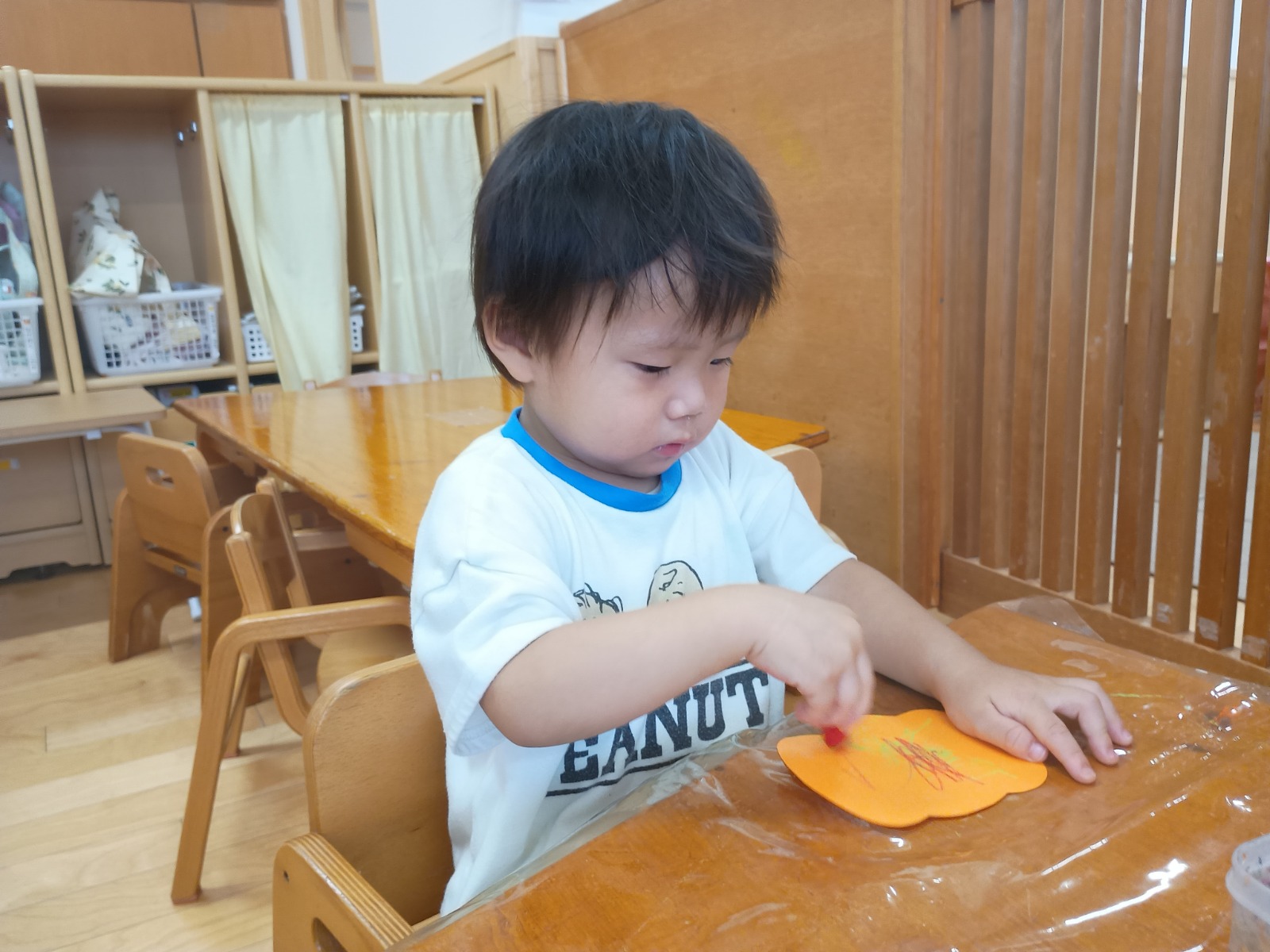 まずはぬたくり製作でつくったかぼちゃオバケ。