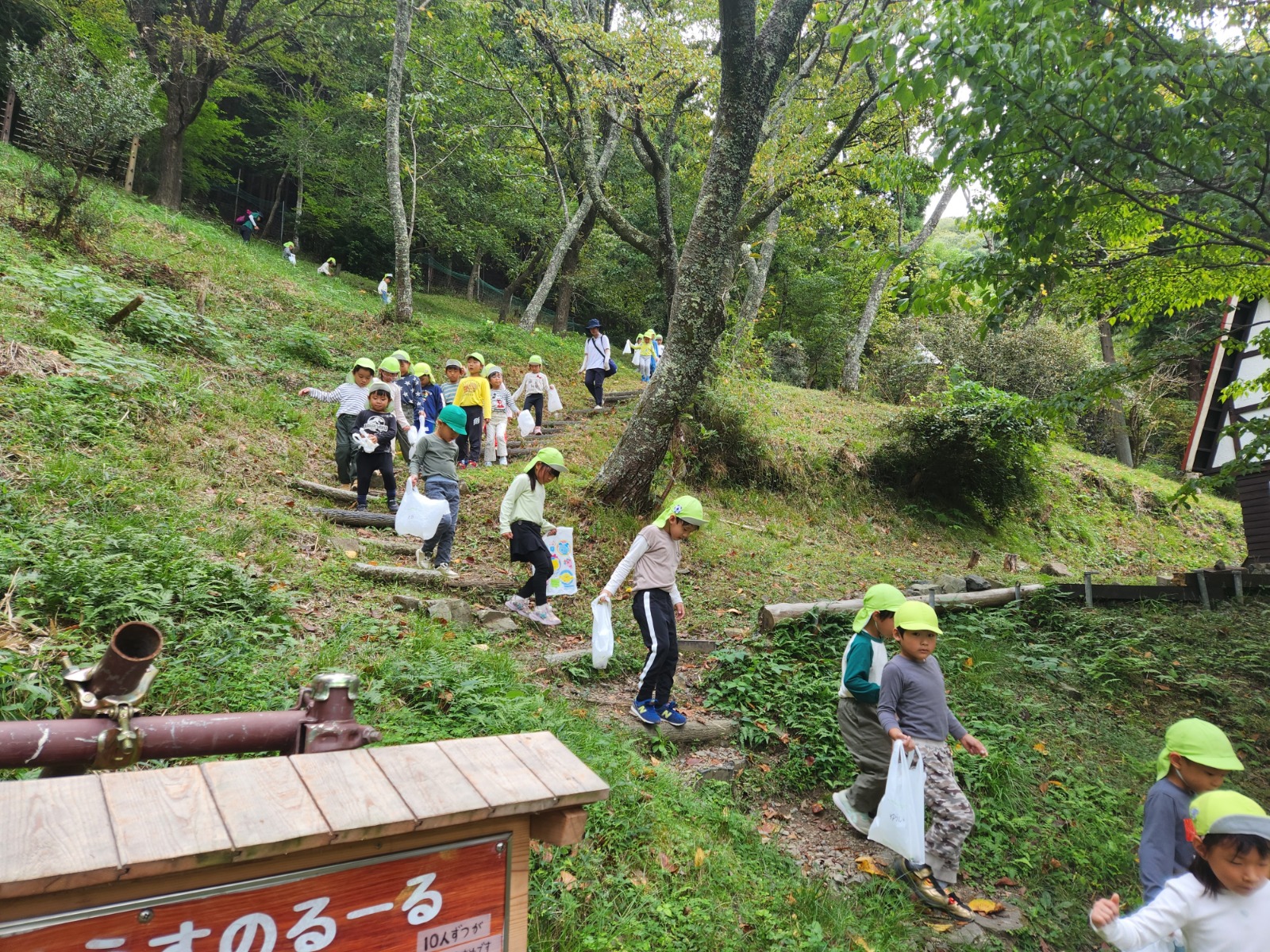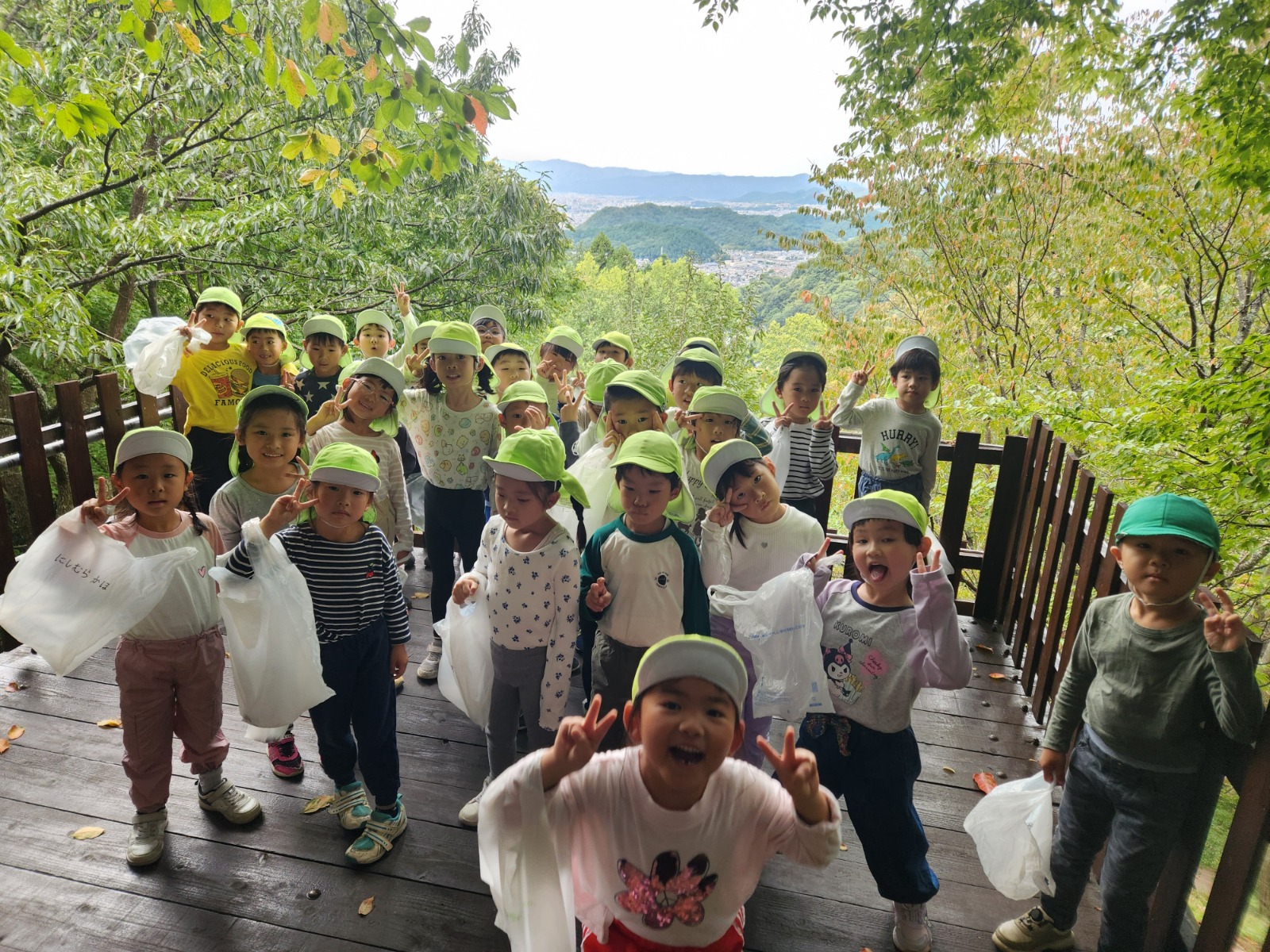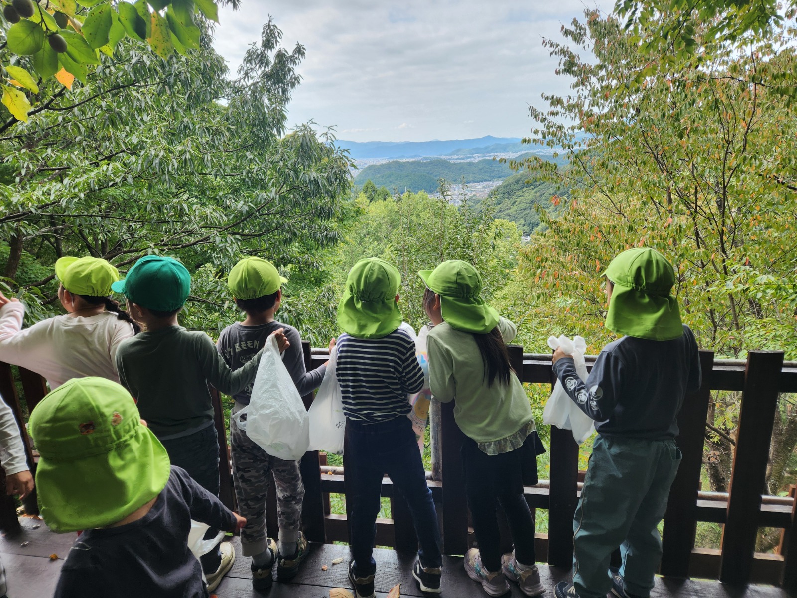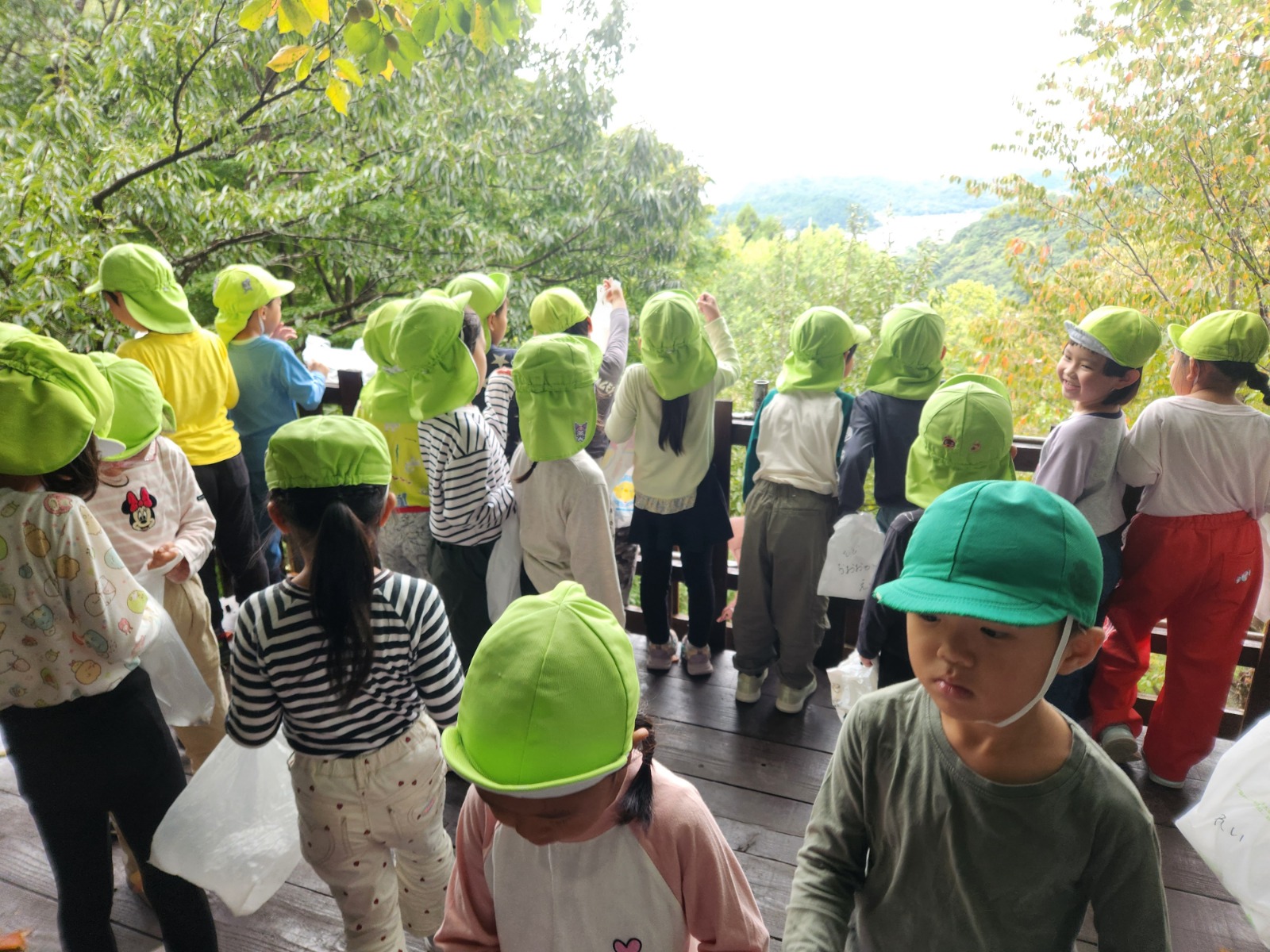 猿の見張り台からは、キレイな景色が見え、「お家見えるかな?」「衣笠幼稚園見えるかな?」とみんなで大きな声で「おーーーーい!」と何度も呼びました!聞こえたかな?