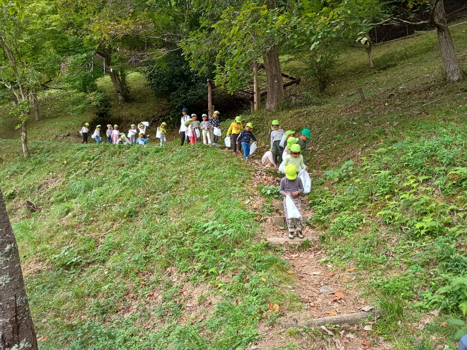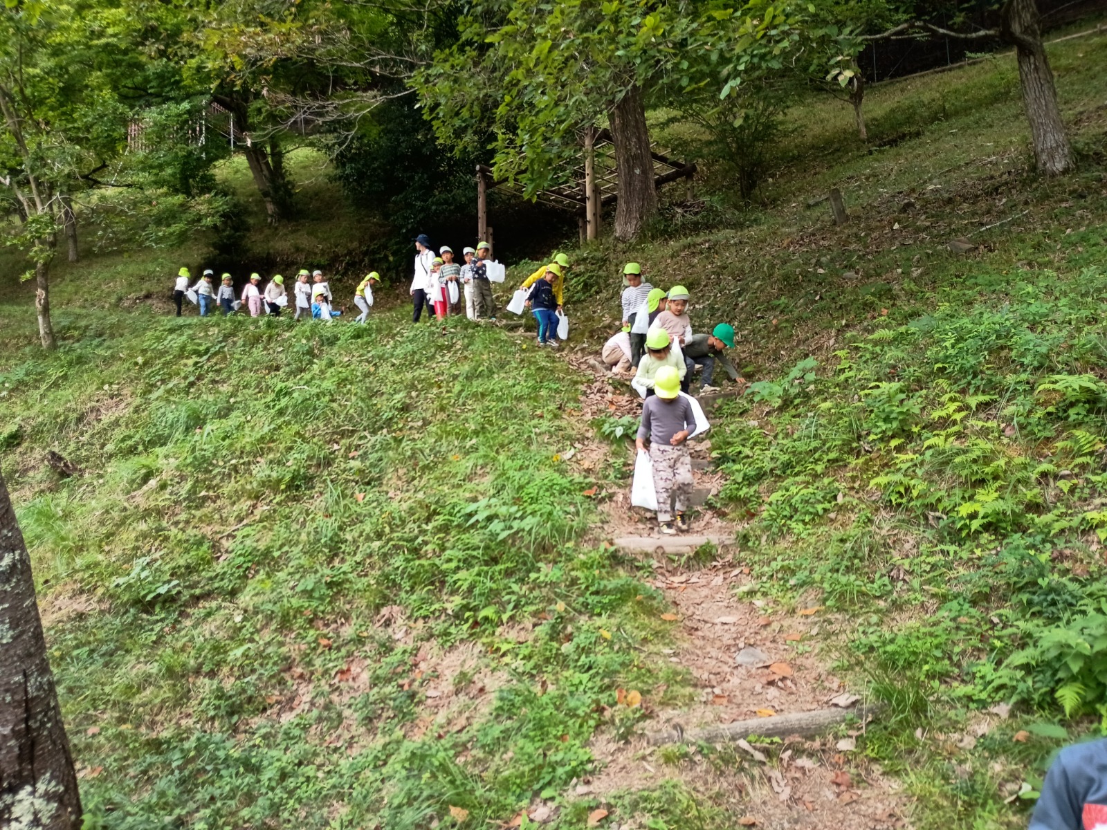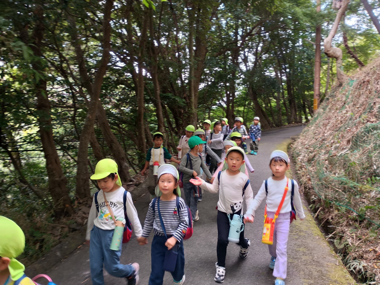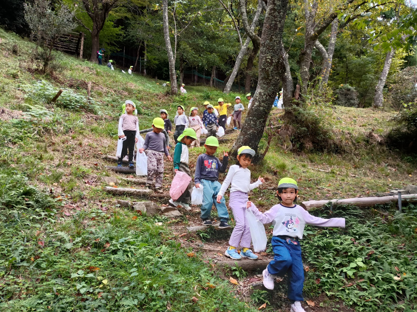 猿の見張り台からは、キレイな景色が見え、「お家見えるかな?」「衣笠幼稚園見えるかな?」とみんなで大きな声で「おーーーーい!」と何度も呼びました!聞こえたかな?
