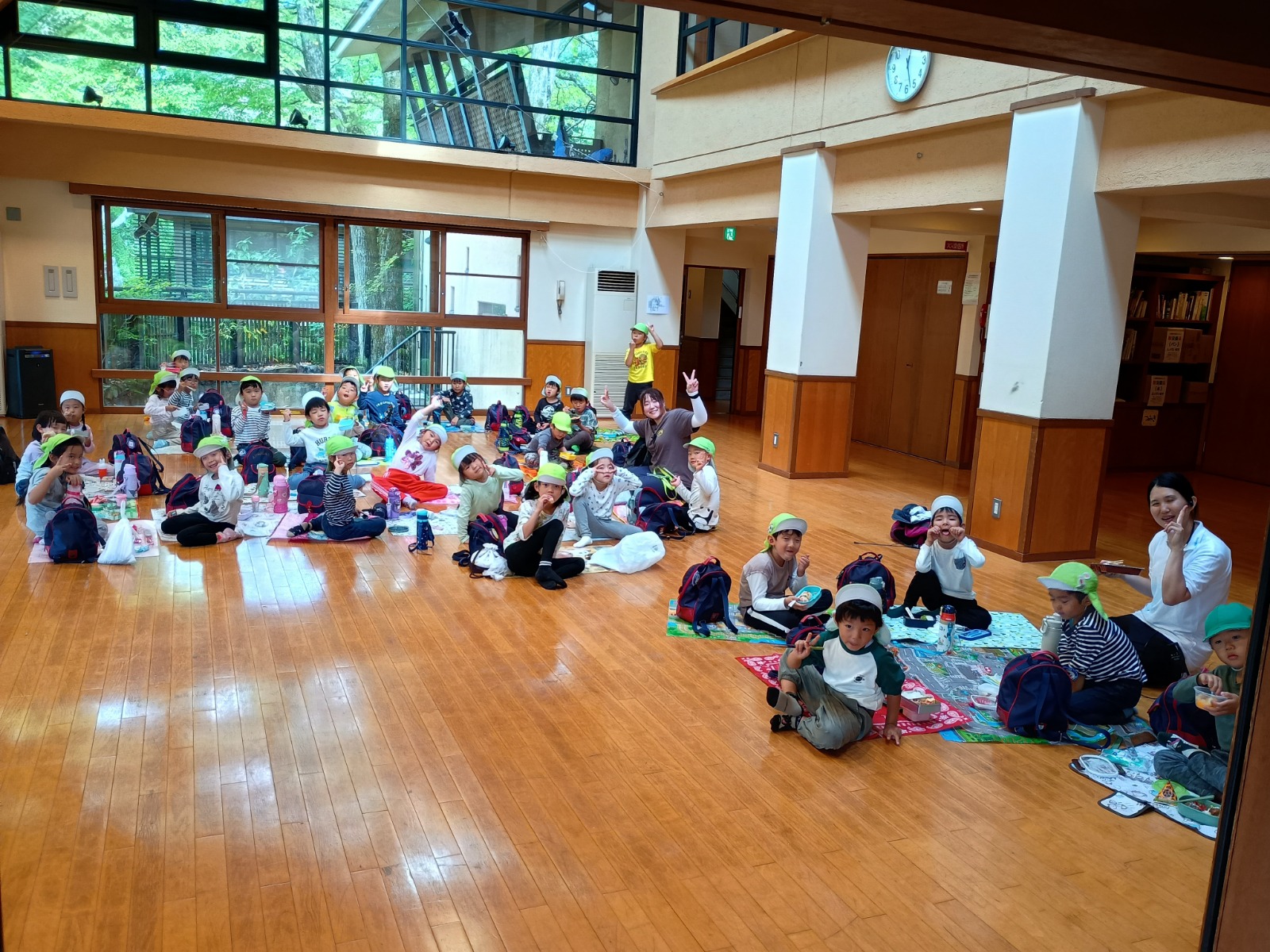 朝からみんなはウキウキで、「お弁当持ってきたよ!」「唐揚げとーウィンナー入ってる!」「○○ちゃんなに入ってるの?」「お弁当早く食べたいなー!楽しみやなー!」とお弁当の話題で持ちきりでした!
