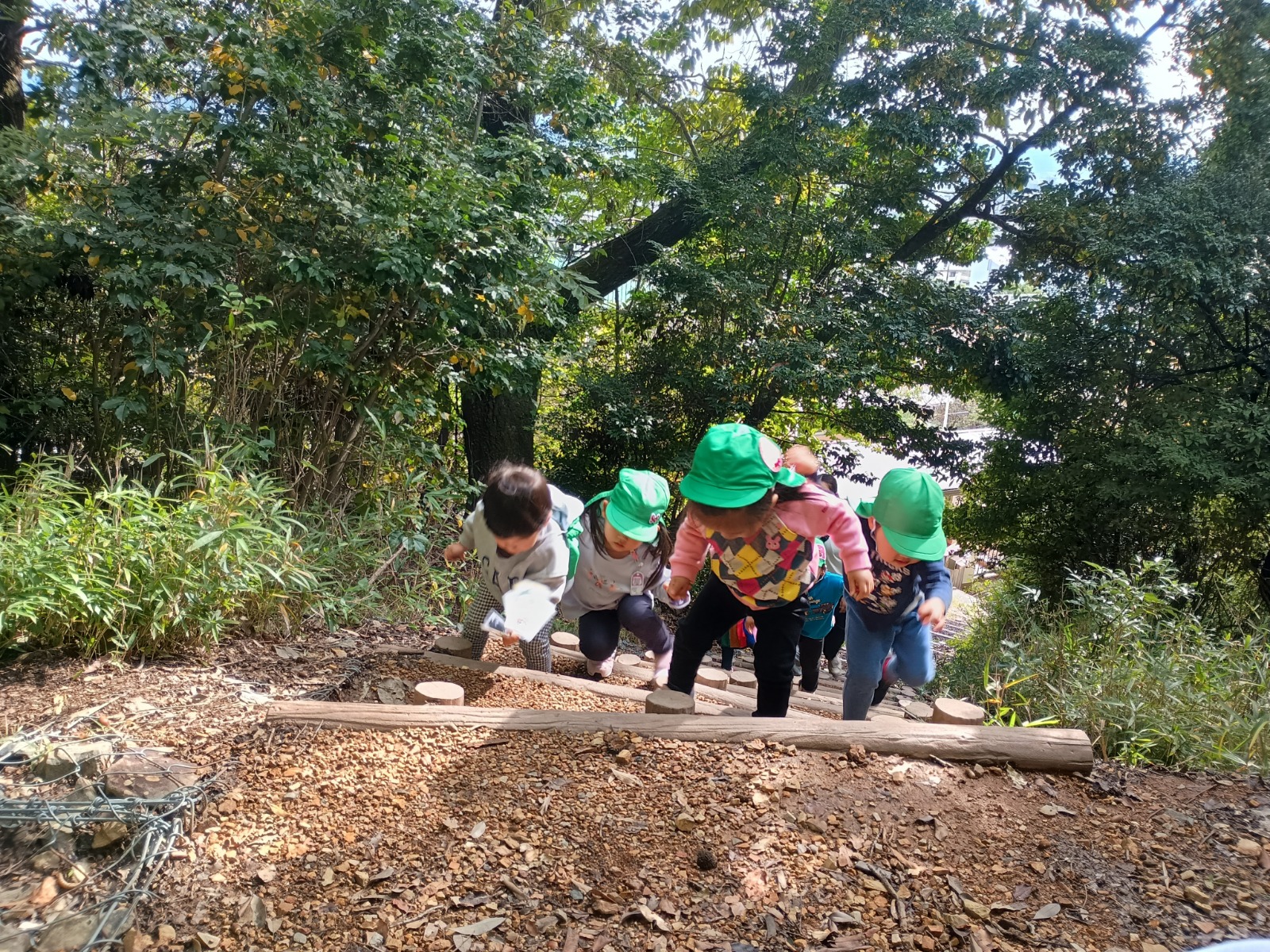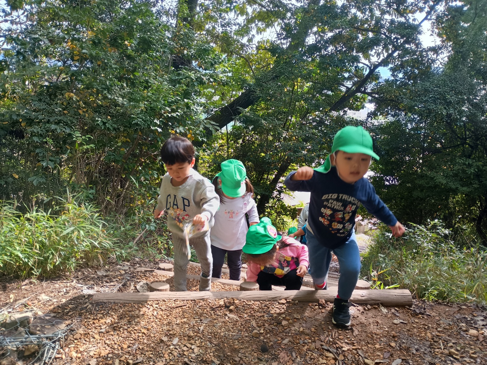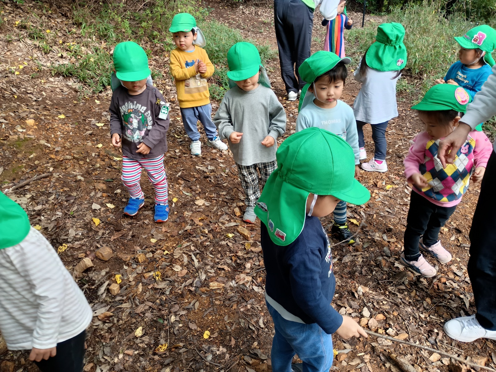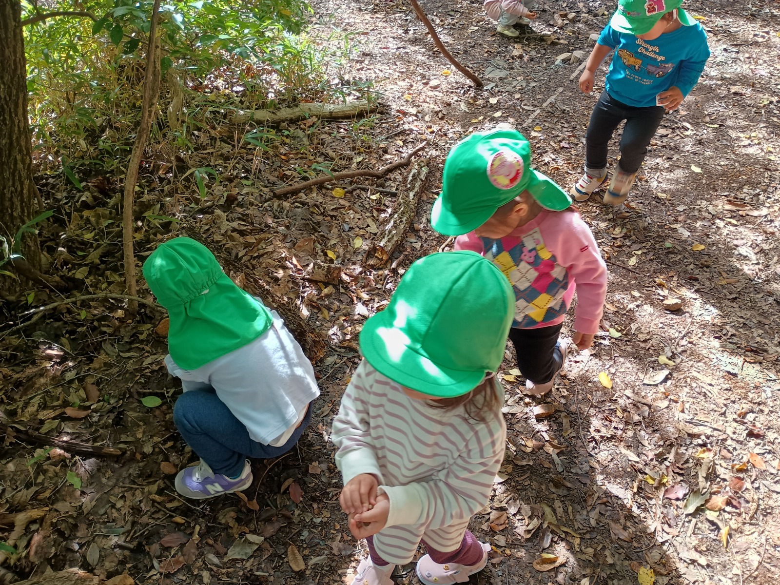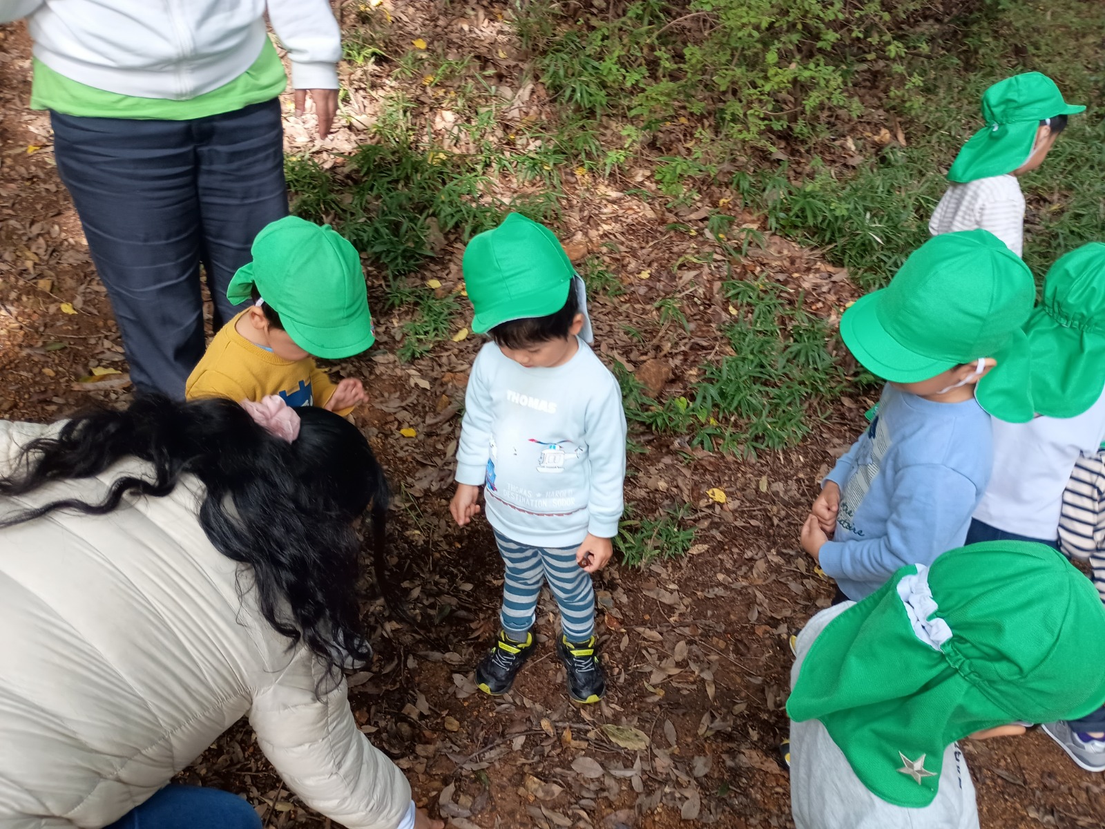 衣笠山には沢山のどんぐりが落ちており、見つけたどんぐりの見せ合いっこをしたり、帽子の付いたどんぐりを見つけると「先生みてー!」と見せに来てくださる姿がとても可愛かったです。まだ、松ぼっくりは落ちていませんでしたが「次行く時はあるかな?」と今週の衣笠山を楽しみにしてくれています♪