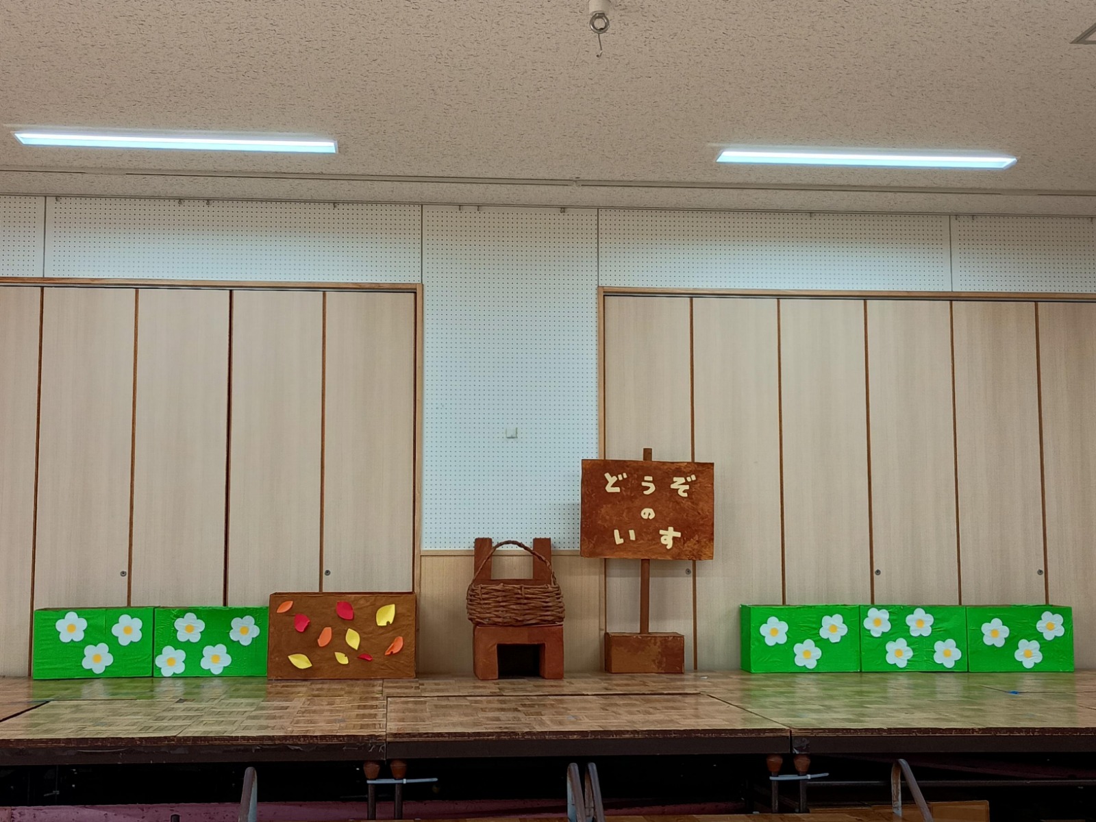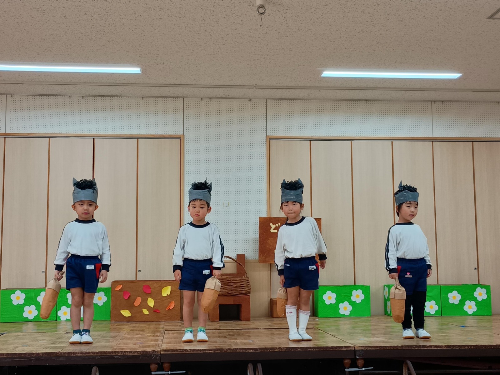 練習が始まったころはセリフをひとりで言うことが恥ずかしく大きな声でなかなか言えませんでしたがおやまにいる動物たちのように大きな声でいってみよう!と練習すると少しずつ、大きな声でセリフが言えるようになりました!