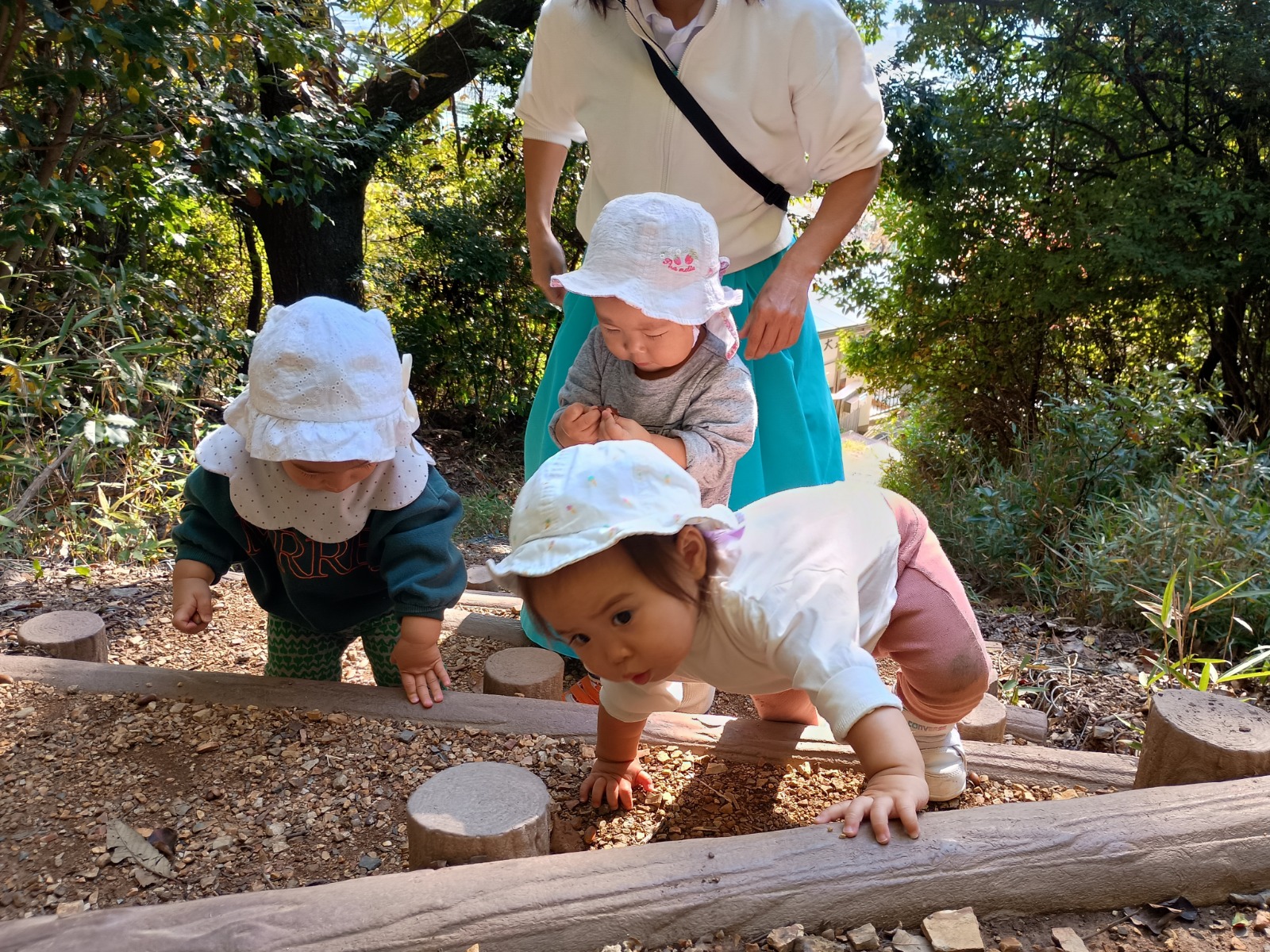 初めての衣笠山は先生と手を繋いで入口の階段を登り、慣れてくると自分で手をついて登る姿もあり、子どもたちの逞しさと成長を感じました✨