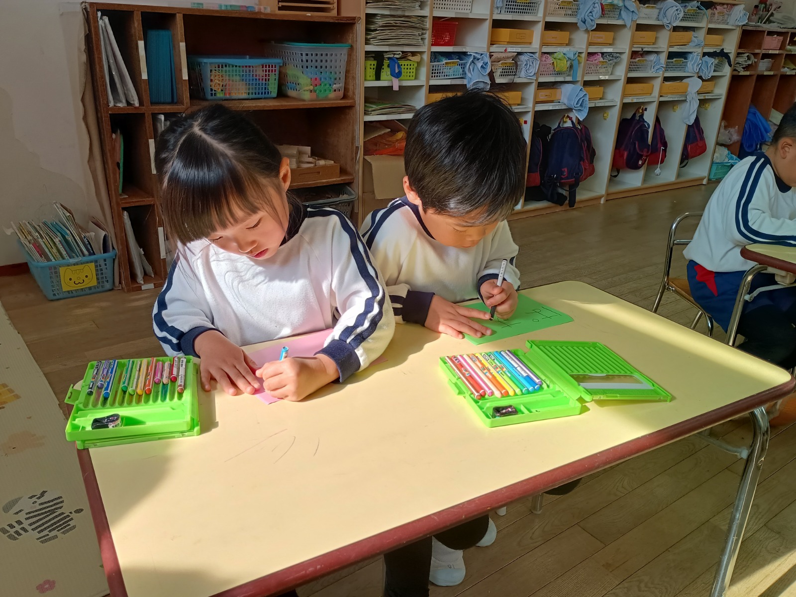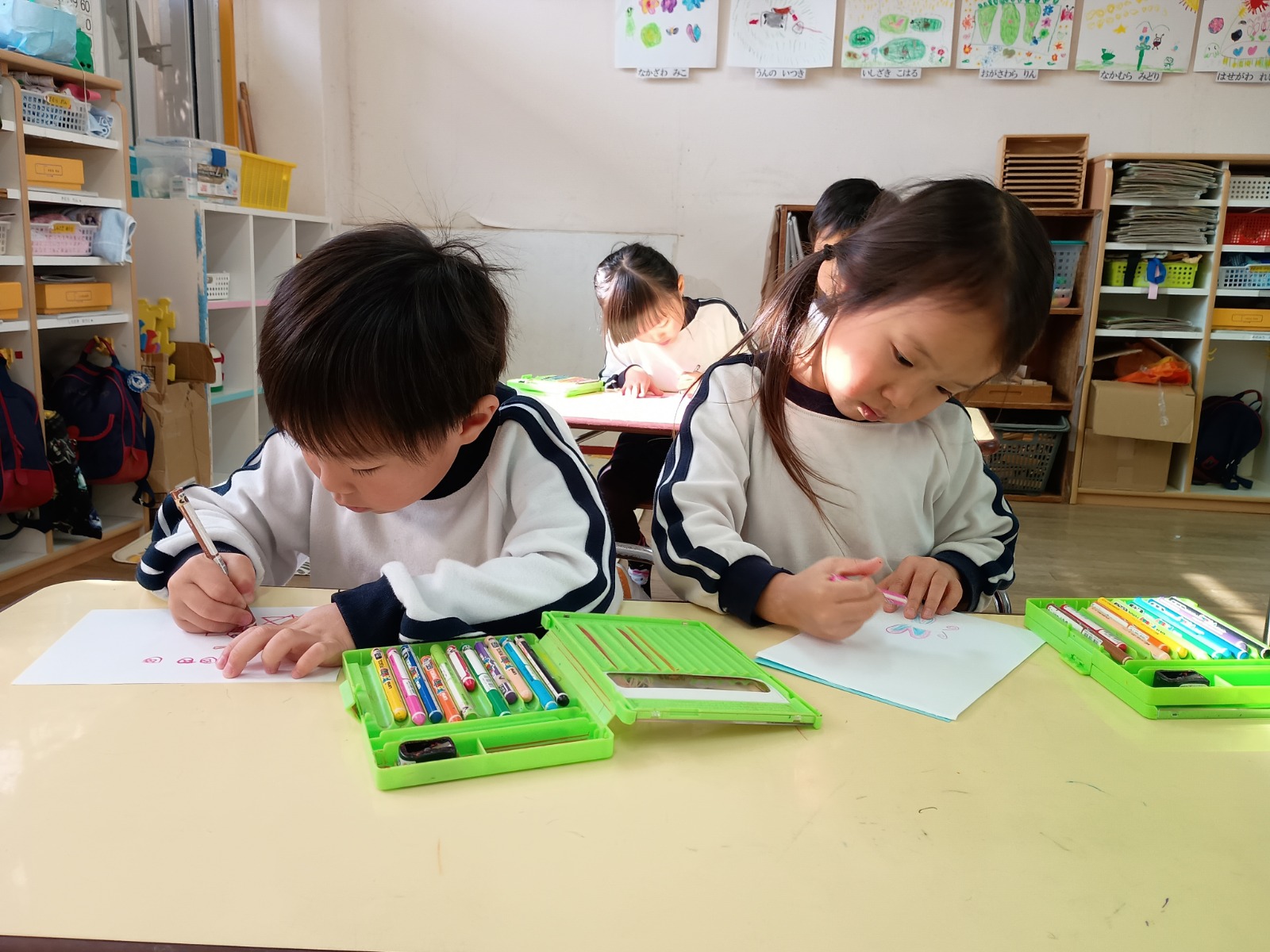 いよいよ、土曜日は劇発表会です。今週は、見に来てくれるお家の人のために、チケットを書きました!自分の役の虫、お家の人のお顔を描くお友達や、ひらがなに挑戦し「みてね」「きてね」などとメッセージを書くお友達もいましたよ。あと「◯回寝たら、劇発表会!」と毎日カウントダウンし、「お家の人に早く見せたい!」と楽しみにしておれられます。お薬ケースに入っているので、ぜひお子様から受け取ってくださいね(^^)