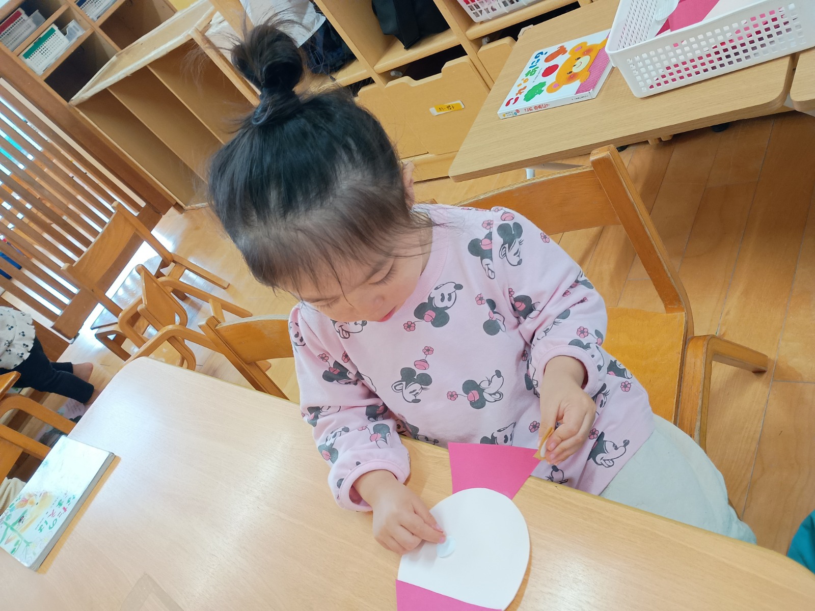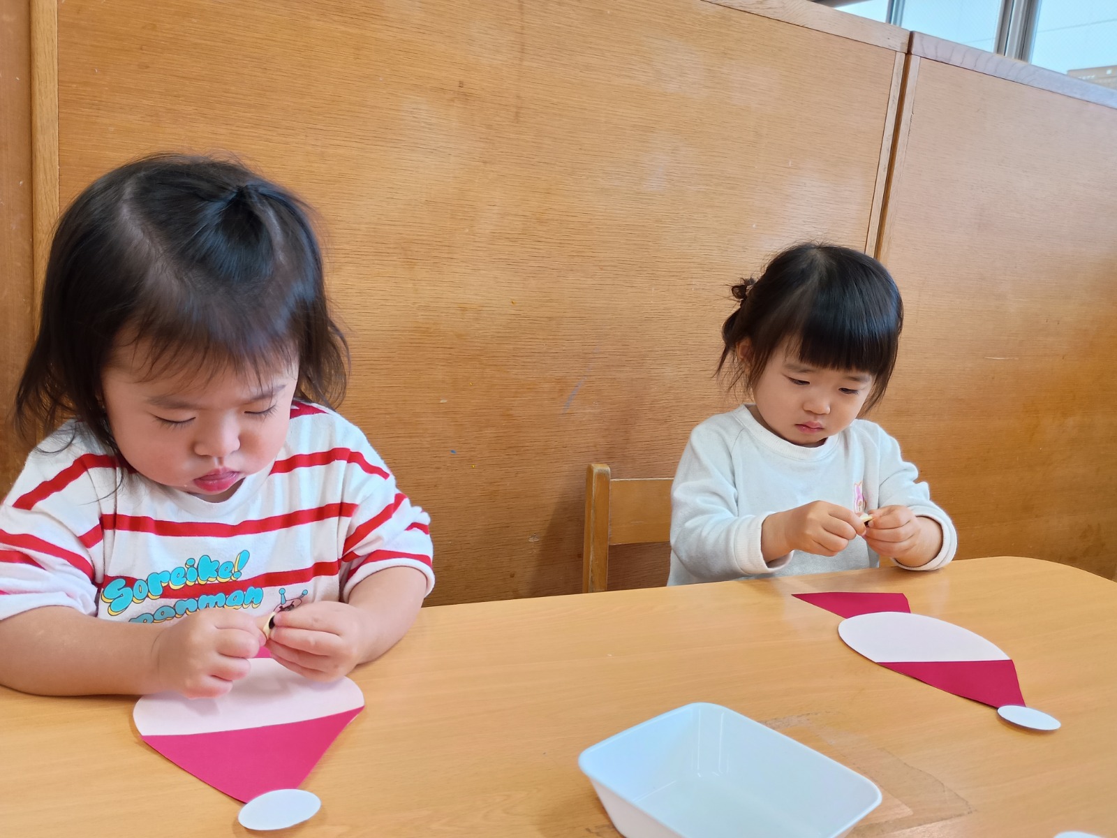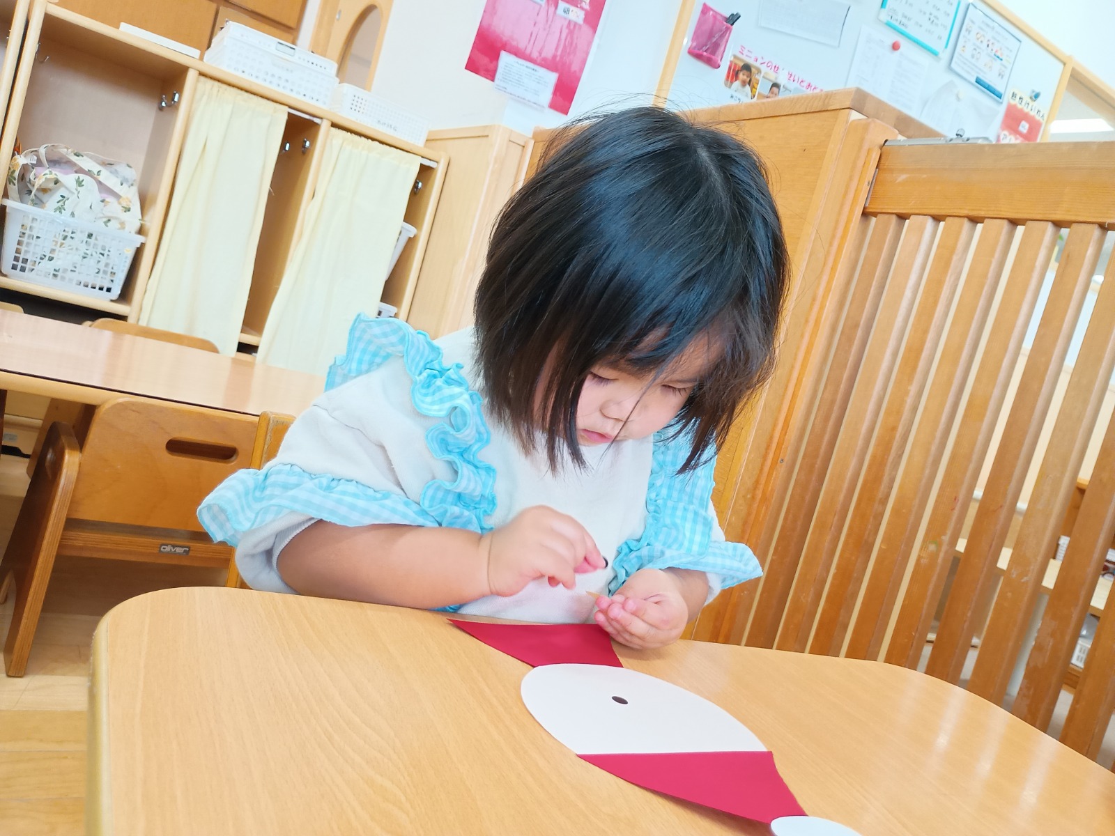 「目はどこかな?」「鼻は?」と伝えると、自分の顔を触って位置を確認してから貼っていく子どもたちもいました✨