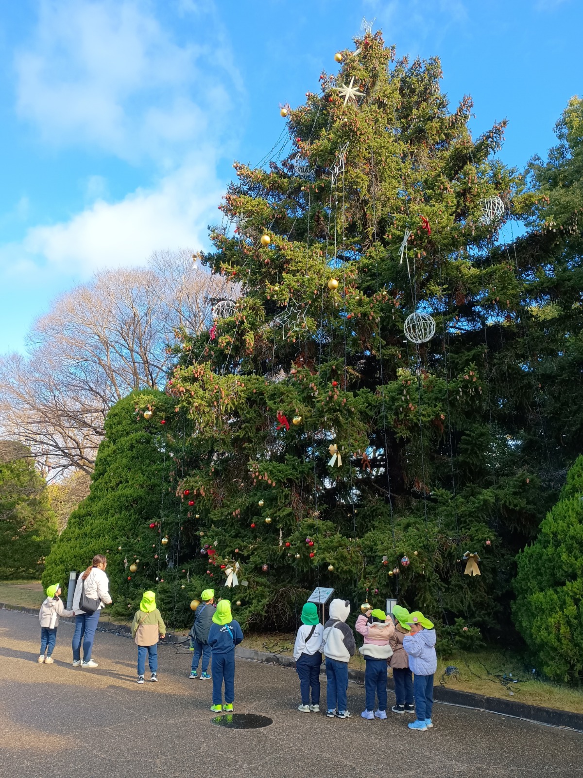 植物園の温室に向かう途中でみんなの目にとまったのは大きなクリスマスツリー!