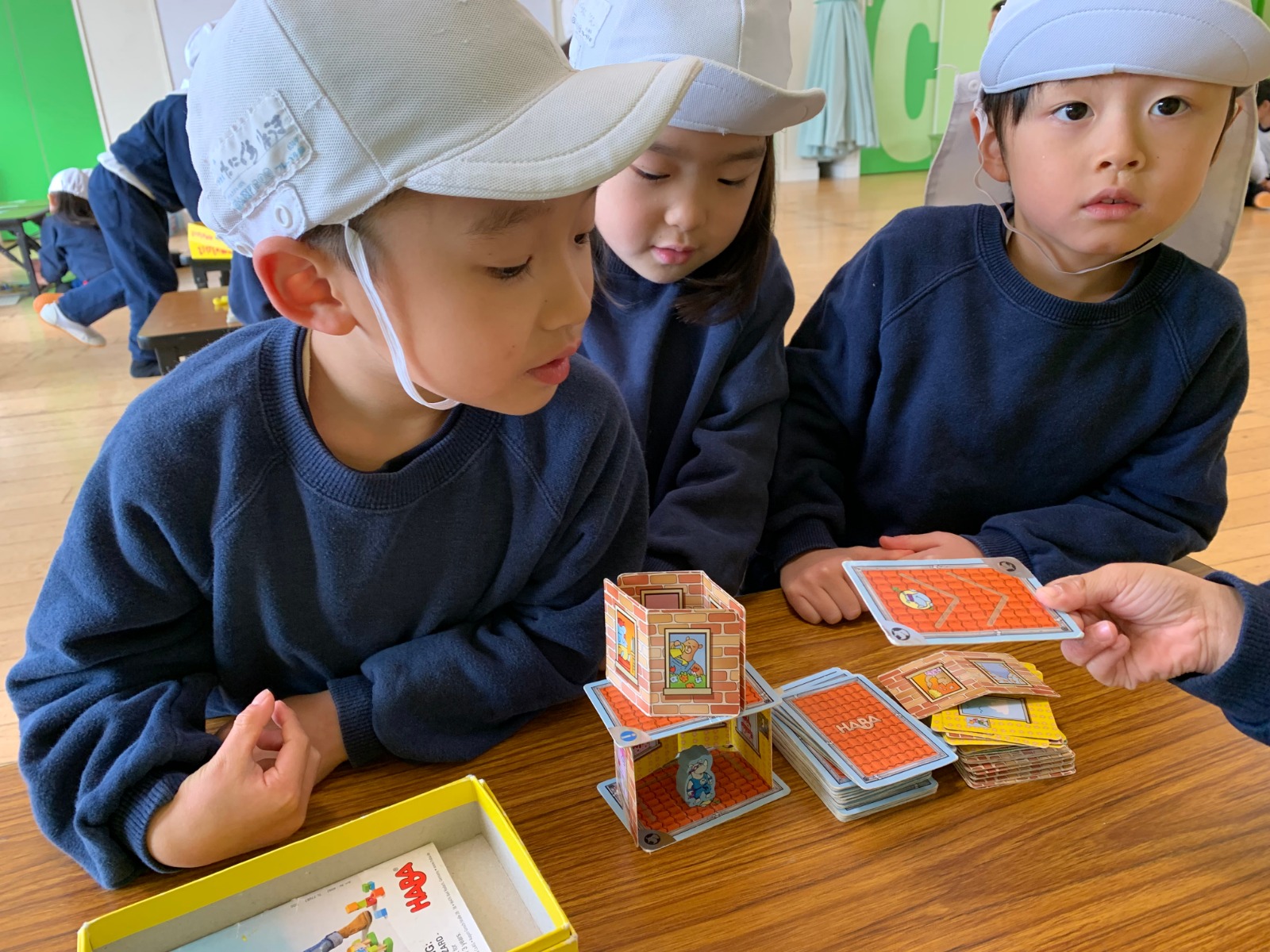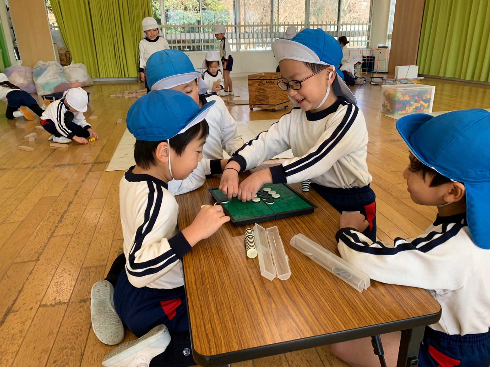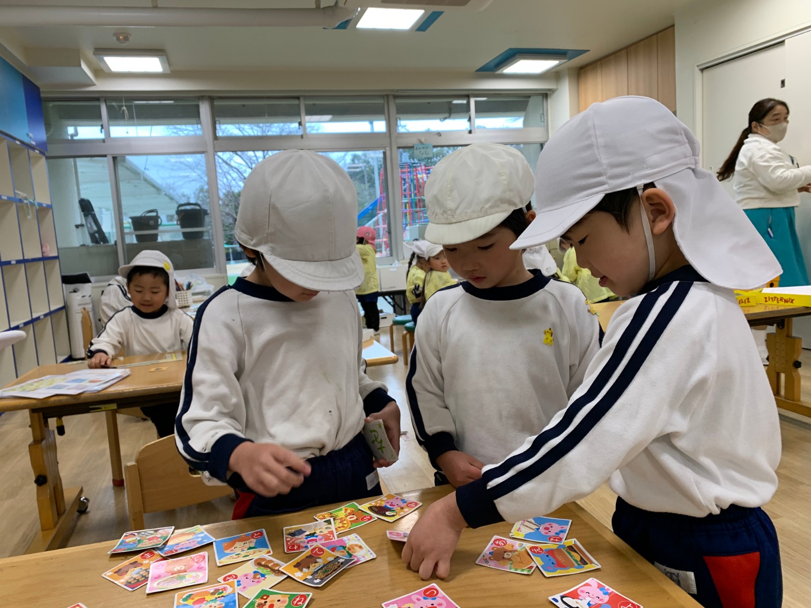 室内では、積み木、カプラ、カードゲームやカルタをして遊んでいます。 積み木やカプラは高く積み上げことをお友達と協力して楽しんでおられますよ。 カルタは読み手も子どもたち同士で話し合い、何回戦も遊ぶ姿が見られます! 戸外遊びでは、芝生でおにごっこやサッカー遊び、ドッチボールが大人気ですよ! 寒さに負けない身体づくりをこれからもして行こうと思います。