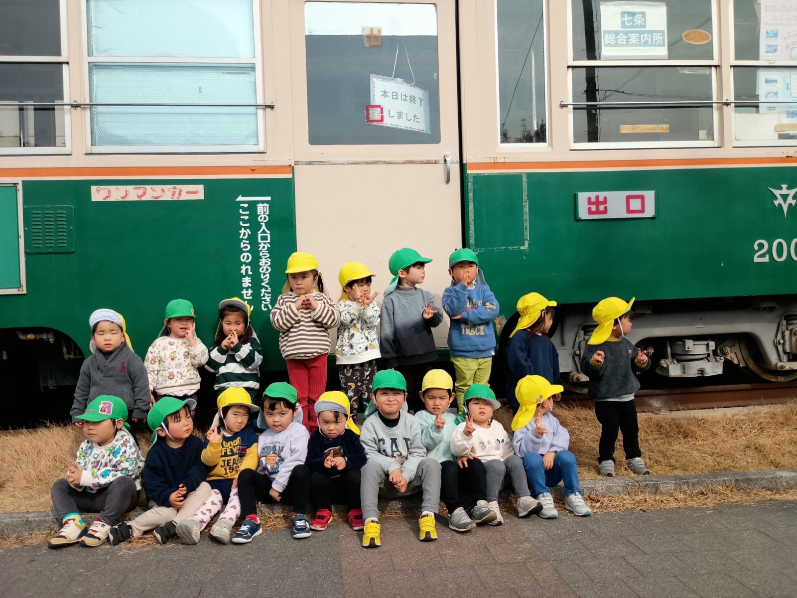 梅小路公園に着くと電車の前で写真を撮ってから遊具で遊びました。