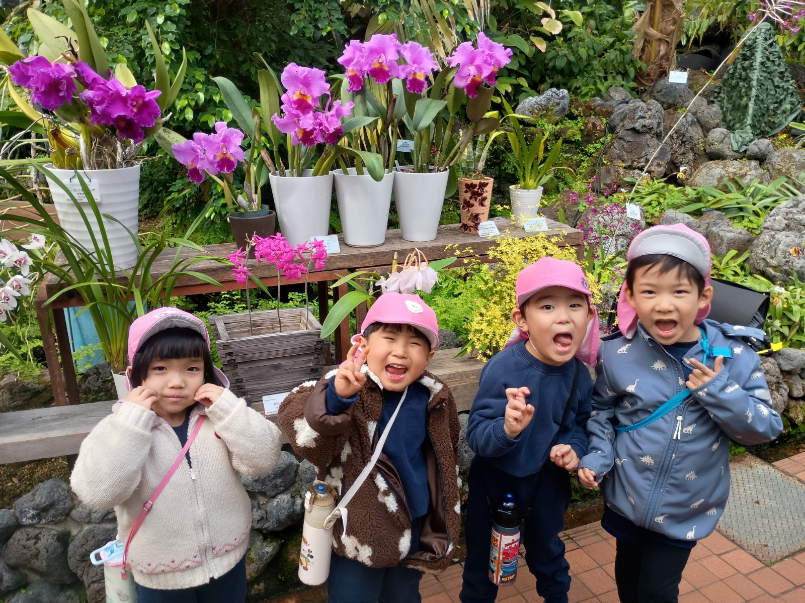 2月の園外保育で、植物園の温室に行ってきました。 バスの中では、「どんなお花が見れるかなぁ♡」と可愛らしい会話も聞こえてきましたよ! いざ温室に入ってみると、お花を見て「きれい!いい匂い!すごい!」と子供たちも大興奮でした。 その後、ドンクマリラボで滑り台や、木のアスレチックを楽しみましたよ! 来月はお弁当遠足です♡ 子供たちも今からドキドキワクワク♡ 素敵な思い出を作りたいと思います。