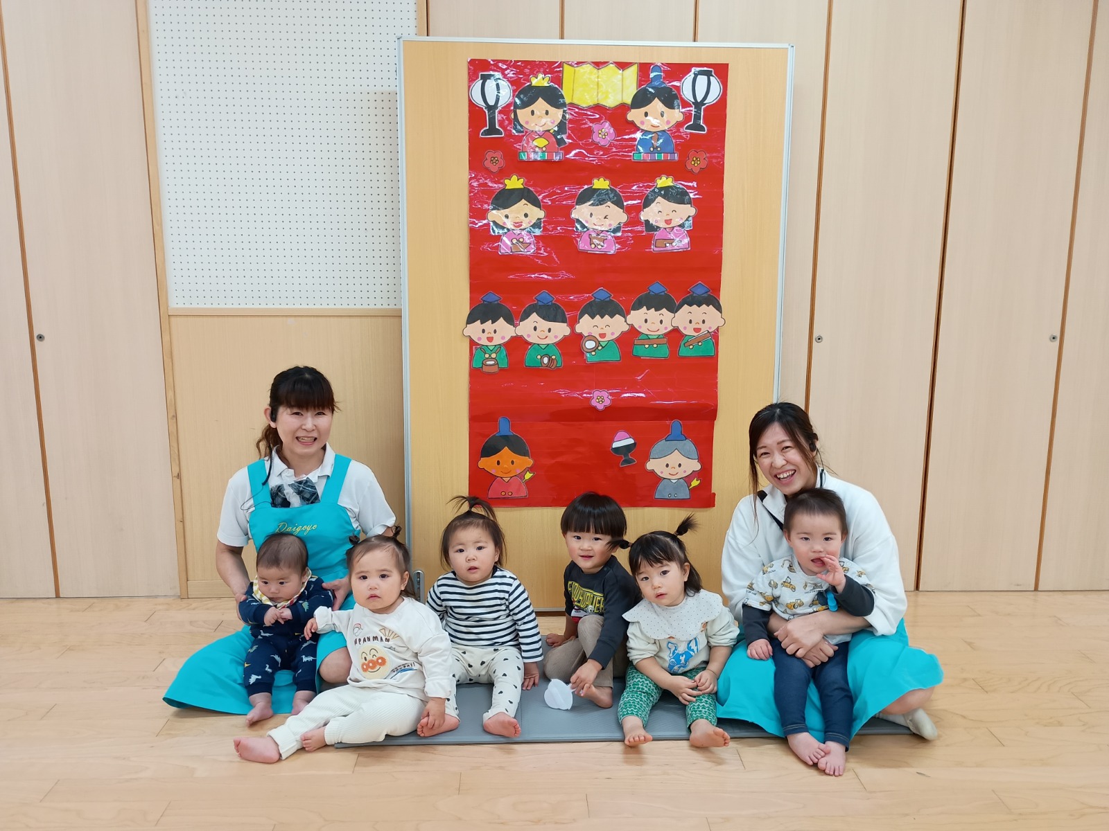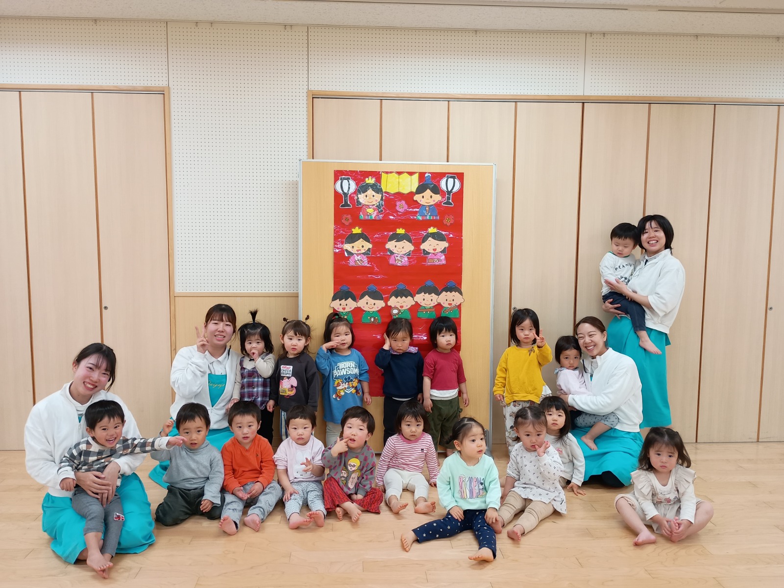 ひなまつり会では、乳児組の子ども達にはまだ難しいお話しでしたが、女の子が健康に幸せに成長する事を願うという由来や、ひな人形は子どもの身代わりとなって病気や事故などの災いを引き受けてくれるお守りなんだよ!と色んなお話を聞きました。