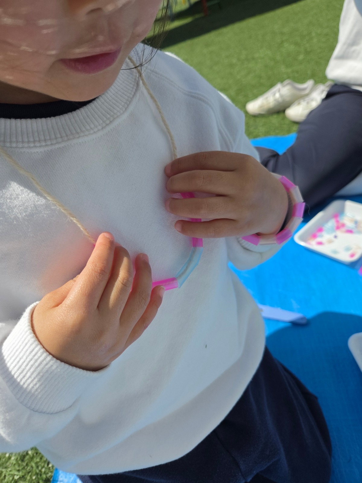 また、一年を通して、様々な素材を使った感触あそびに取り組んできました。春の時期に、子どもたちにスライム遊びが人気だったことがきっかけで、寒天・春雨・片栗粉粘土・氷遊び、泡遊び、粘土遊びや毛糸遊びなど色々な感触あそび行いました。さらに、感触を楽しむだけではなく、指先を沢山使うことで少しずつ細かい作業に繋げていきました。冬に始めた毛糸遊びでは、マフラー制作にも挑戦!牛乳パックを使ってリリアンの要領で編み進めるのですが、まだまだ小さな指先を一生懸命に使って上手に作ってくださっていましたよ。指先を使えるようになってくると、折り紙などの細かい作業もスムーズになり、遊びが広がっていきます。折り紙遊び、廃材遊びなどの細かい作業の遊びは、FUNDAYでも毎回入るほど人気の遊びです!