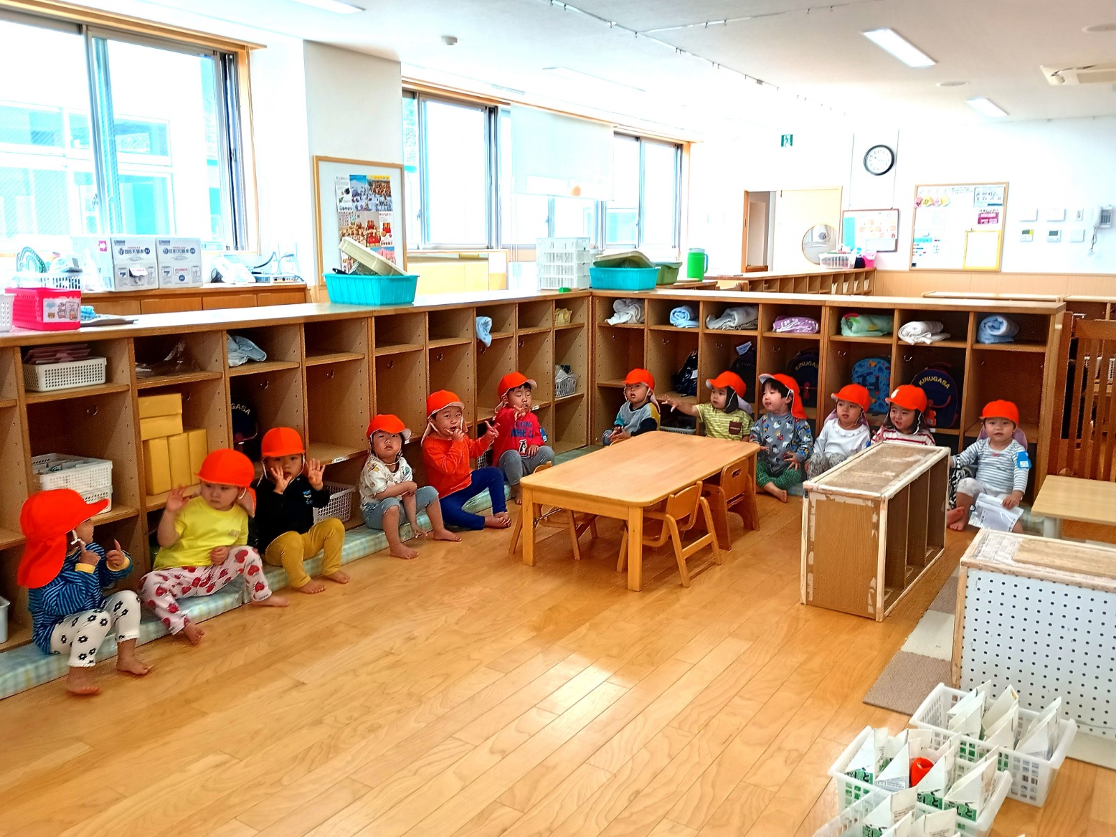 11:10~ 片付け(外あそびの後は自分で帽子や靴下を片付けます!)