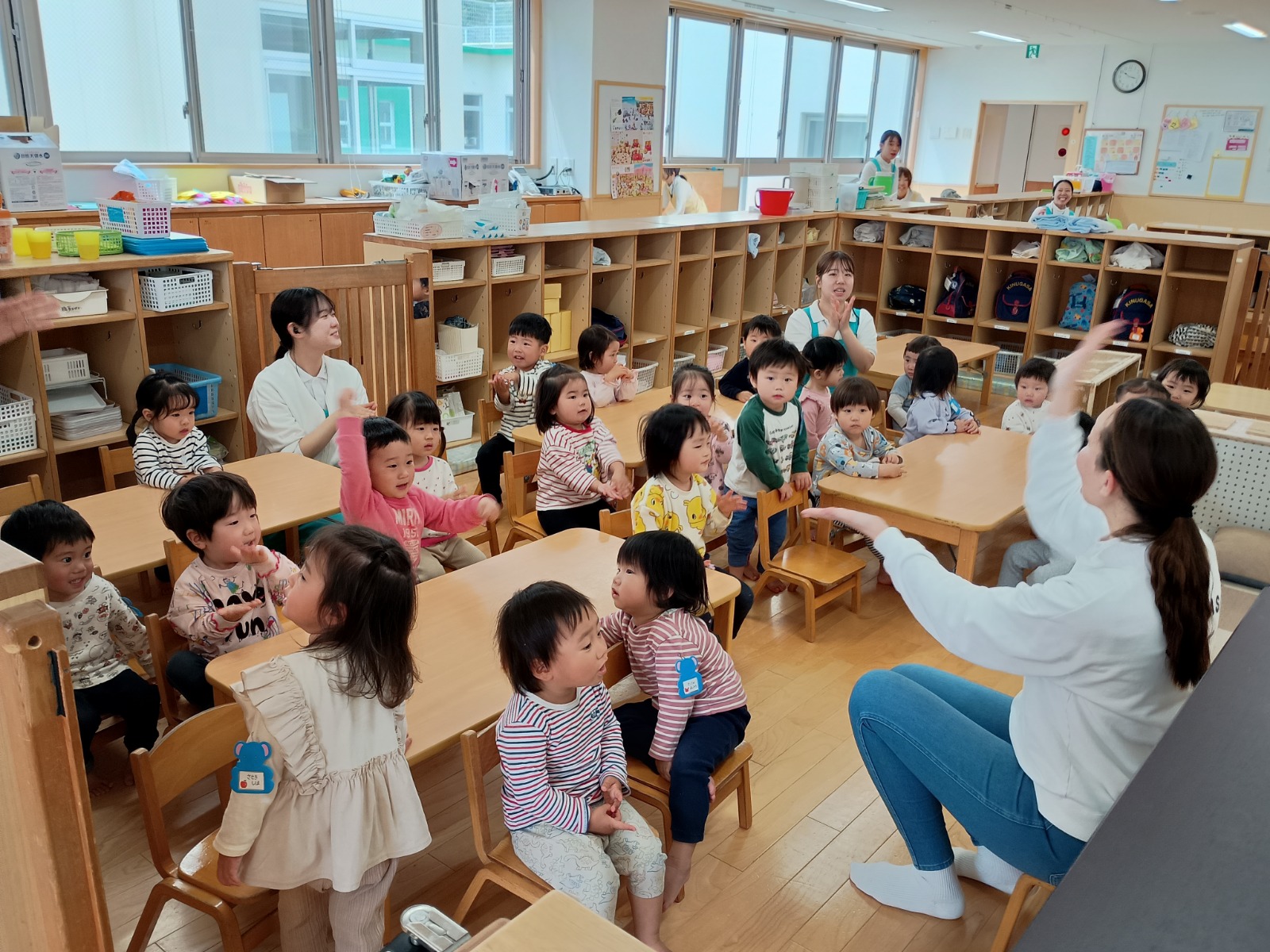 朝の会(ピアノに合わせて季節の歌や手遊びの歌を歌います♪)