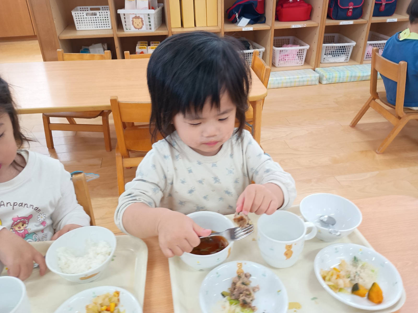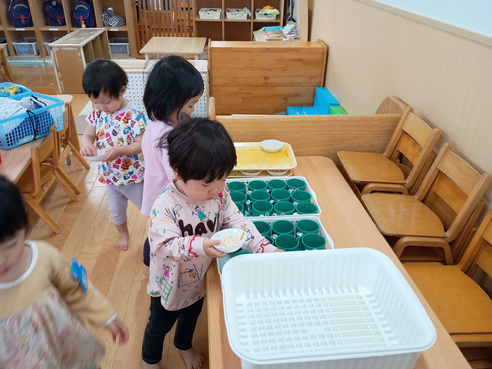 準備後、朝おやつ→自由遊び(クラス保育室)